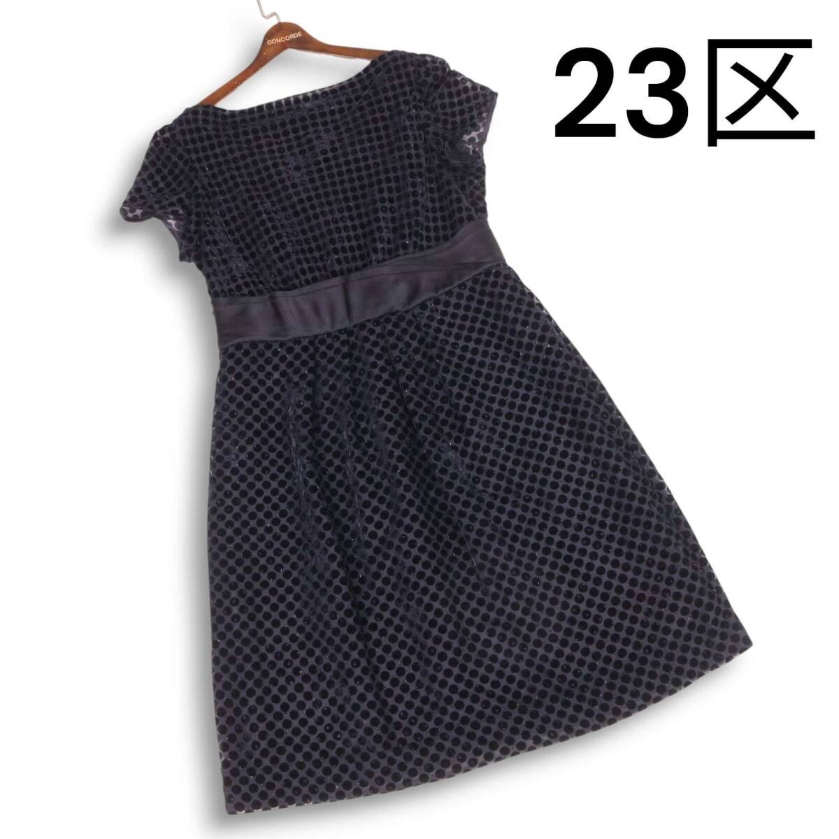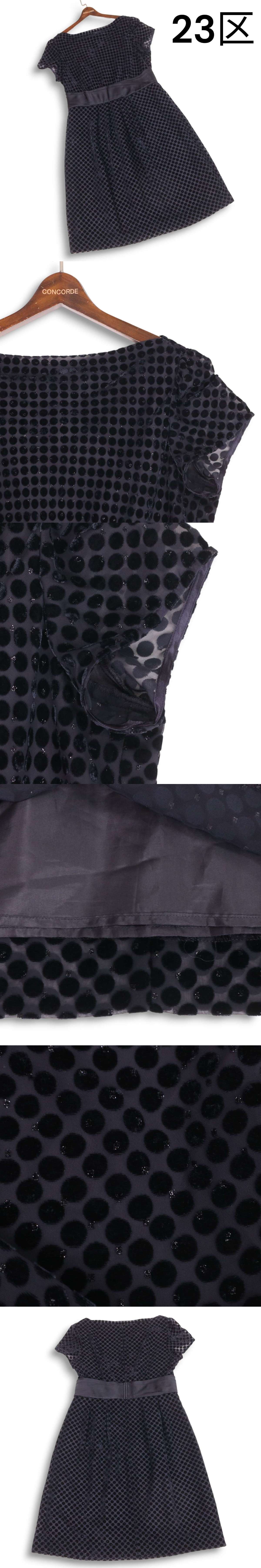 23区 Applaudir アプロディール ラメ フロッキー ドット♪ ワンピース パーティー ドレス Sz.46 レディース 紺 大きいサイズ