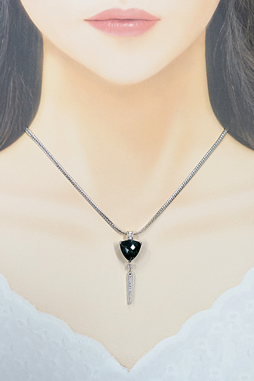 | ■コメント | 水野薫子の、深く落ち着いたグリーンの色合いのトルマリンがエレガントな雰囲気のネックレスです バチカンとトップ下部にはダイヤモンドとミルグレインが施されており、クラシカルな印象を演出してくれます |