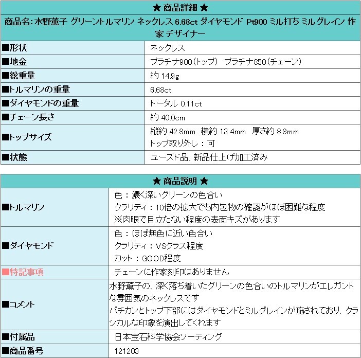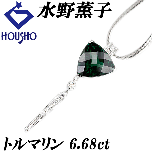 | 商品名:水野薫子 グリーントルマリン ネックレス 6.68ct ダイヤモンド Pt900 ミル打ち ミルグレイン 作家 デザイナー | |