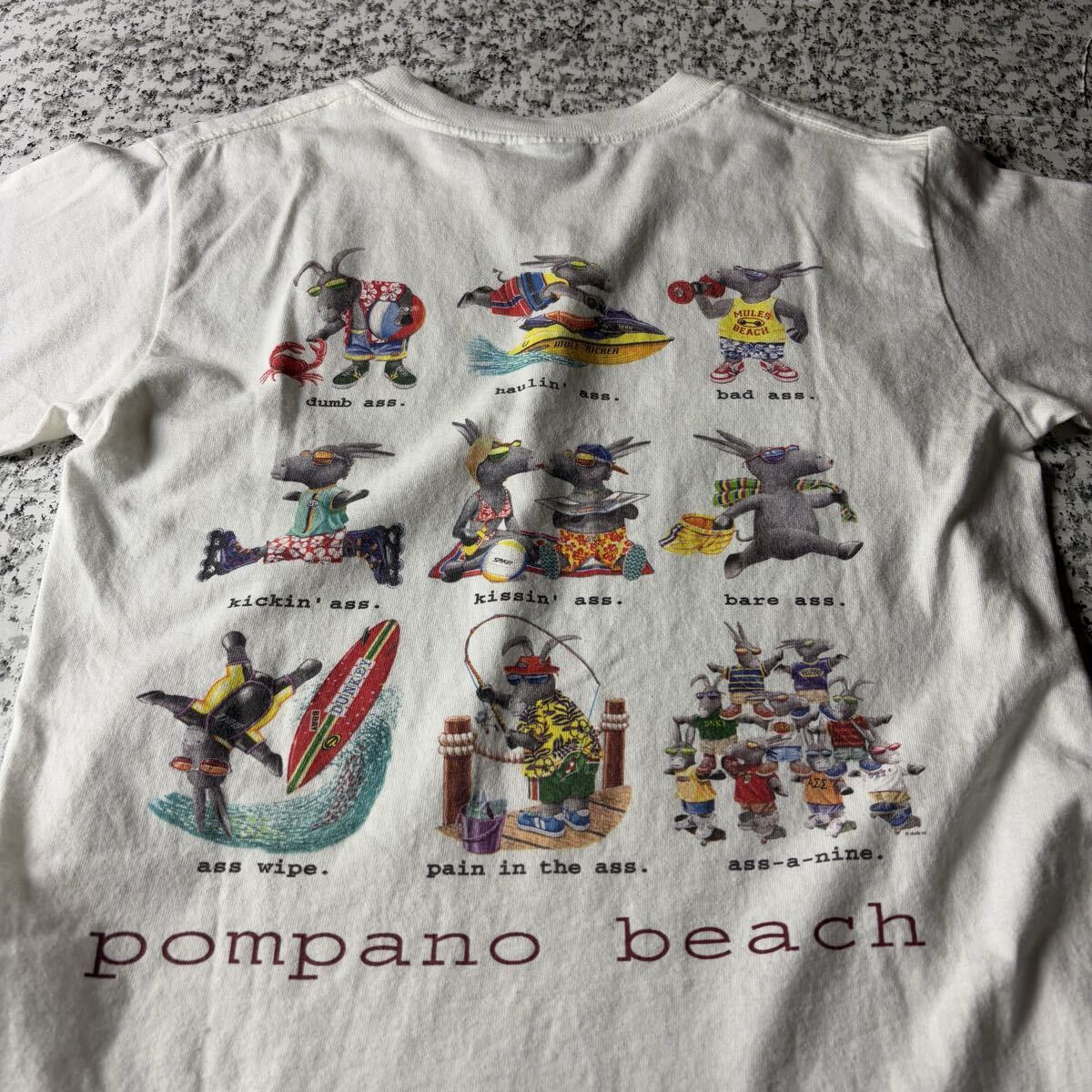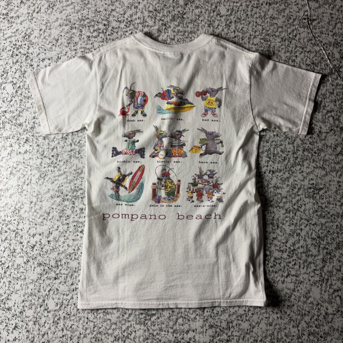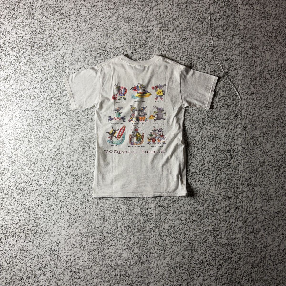 【グッドレギュラー】うさぎ キャラクター イラスト バックプリントTシャツ ホワイト Sサイズ 古着 半袖Tシャツ