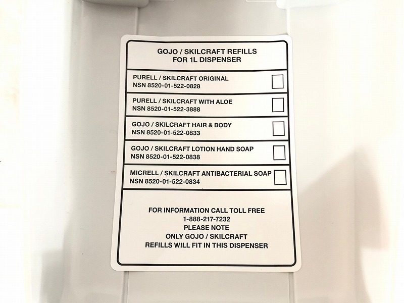 【米軍放出品】未使用品 ハンドソープディスペンサー 6個 消毒ディスペンサー 1000ml 壁付け SKILCRAFT (100)☆CI2O(BB25RK)#25