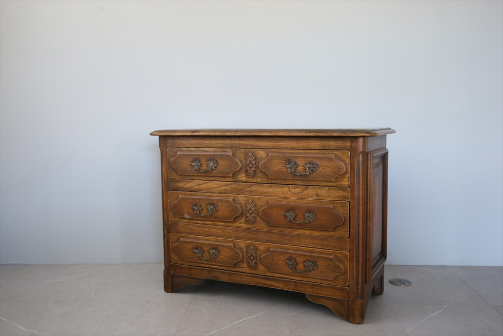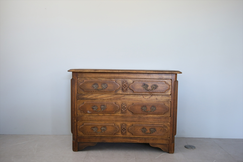 フランスの田舎で見つけた古木の3杯ドロワーです。