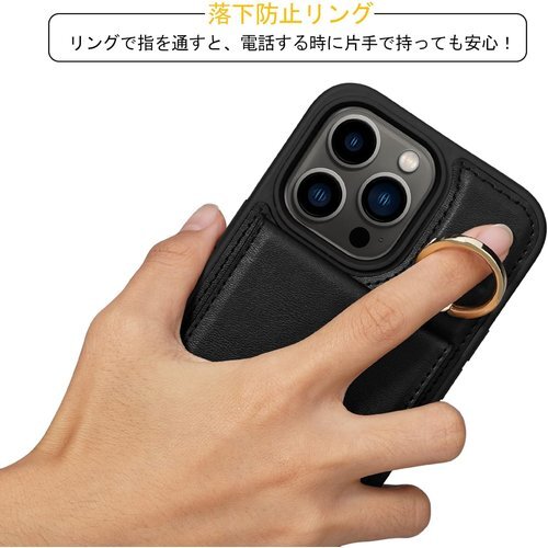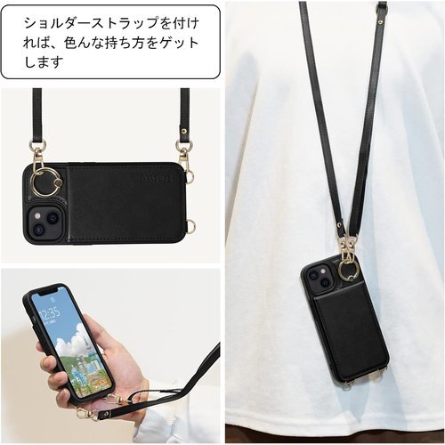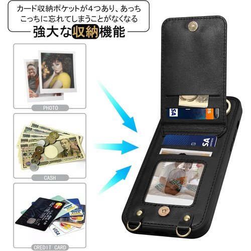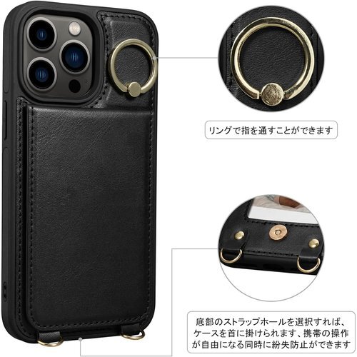 Shlybaay 対応 iPhone 14 Pro M ス 用 可愛い 人気 おしゃれ 財布型 首掛け ブラック 486