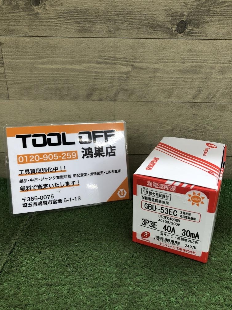 テンパール ■商品名 漏電遮断器 ■型番 GBU-53EC 40A |