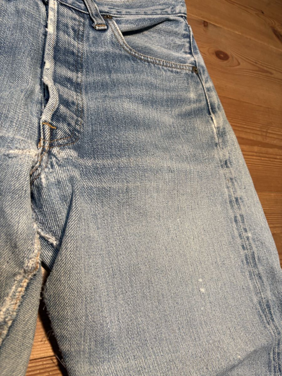 66前期サイズ感◎ W30 ビンテージ Levi's501 66シングル!リーバイス セルビッチ デニムパンツ アイスブルー リペア 黒カン USA 70s'