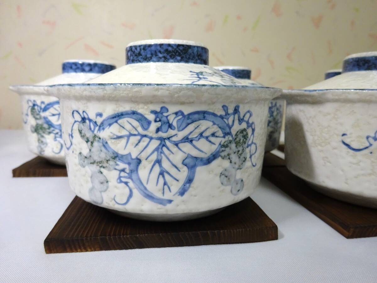 ★未使用★昭和レトロ★和風 蓋付グラタン皿 深皿 5個セット(鍋敷き付)☆箱あり☆ドリア皿 スープボウル 洋食器 陶器 来客用 インテリア
