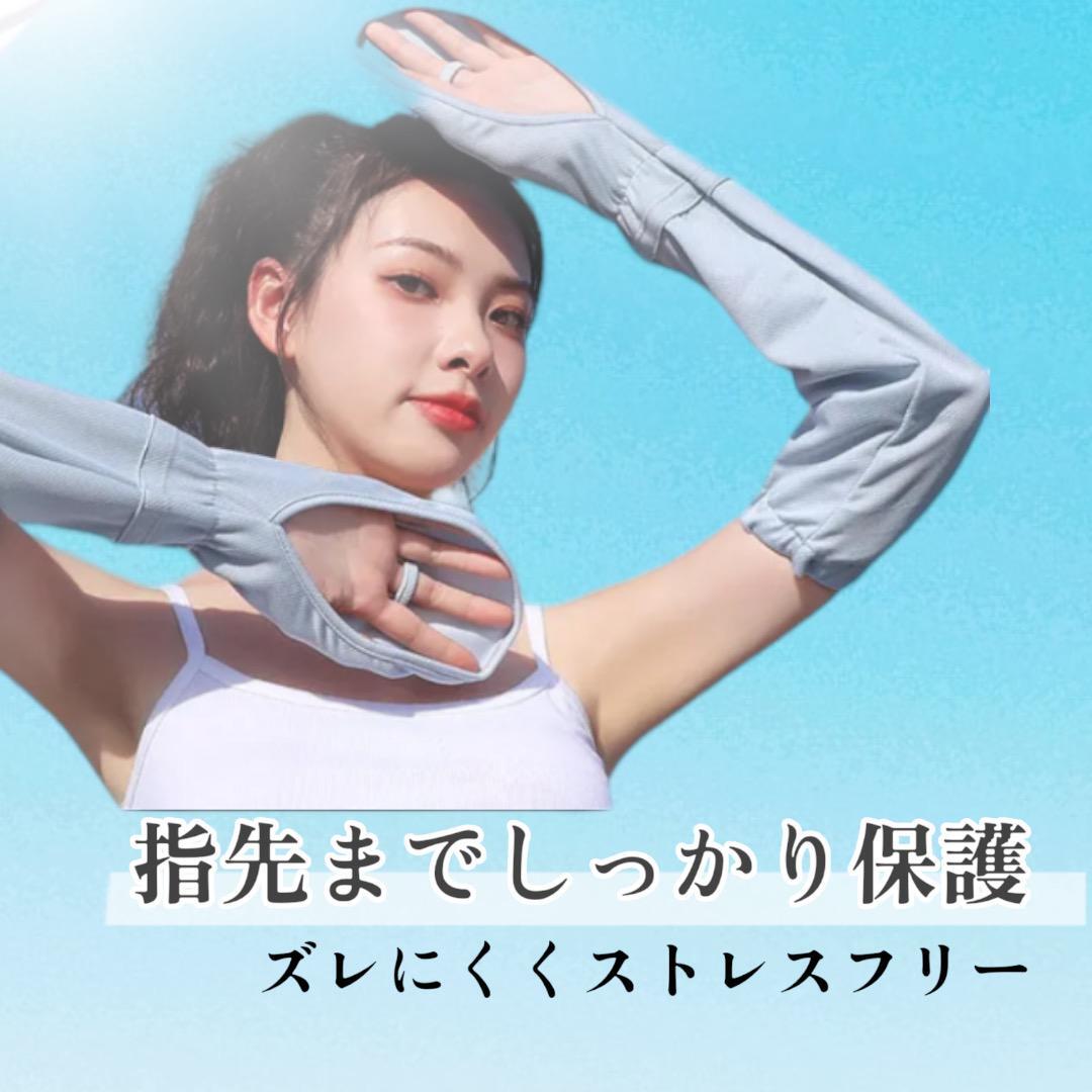 ・指先から肘上までしっかりカバーし日焼けを防止します。