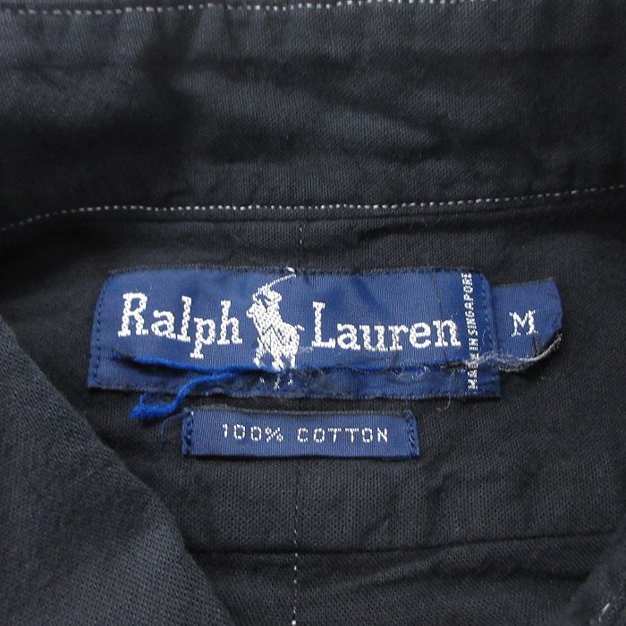 【商品名】 XL★古着 長袖 ブランド シャツ メンズ 90年代 90s ワンポイントロゴ コットン ボタンダウン 黒