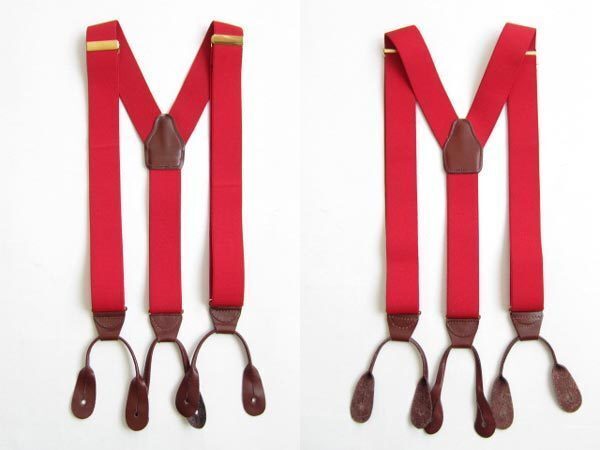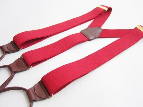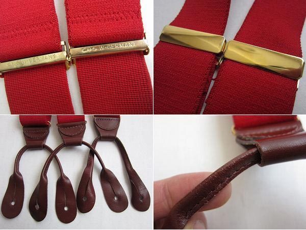 商品名 | CAS W-GERMANY/伸縮素材×レザー/ボタンタブ式/Y型 サスペンダー/赤系/メンズ/D73 |