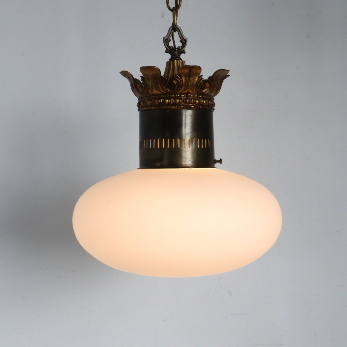 | 商品説明 explanation | ヴィンテージのガラス ペンダントランプです。 マットな乳白色のガラスによって光が柔らかく落ち着いた空間を演出できます。 アンティークらしい気品のある雰囲気で飾るだけでもお部屋のアクセントになります。 ご家庭やお店の照明にいかがでしょうか。 |