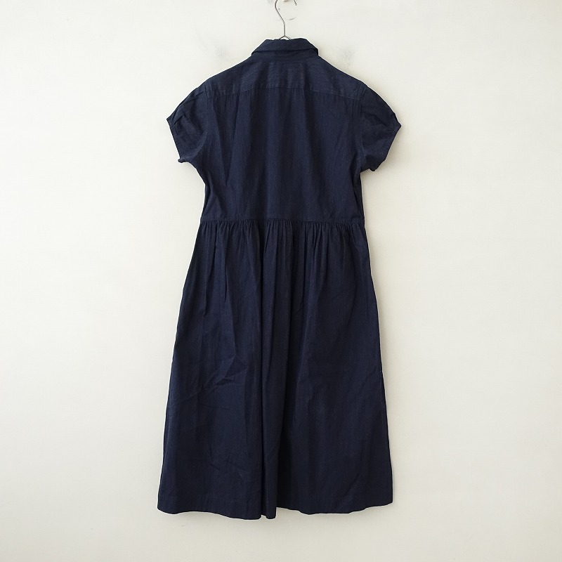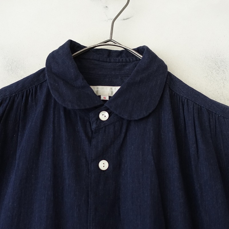 MORIKAGE SHIRT KYOTOの丸襟ワンピースです。カラーはインディゴ風ネイビーです。丸襟で、ウエスト切替下にギャザー入り、袖口はタック入りのパフスリーブデザインです 。フロントボタン開閉で着脱でき、両サイドにシームポケットが付いております。 |