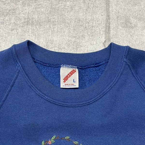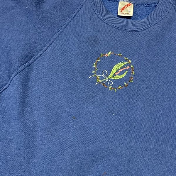 80s JERZEES スウェット USA製 裏起毛 ラグラン ジャージーズ  80年代 RUSSELL ATHLETIC ラッセルアスレチック トレーナー 石瀬7151 花柄 刺繍 vintage ビンテージ MADE IN USA アメリカ製 50/50 ボディ オールド OLD