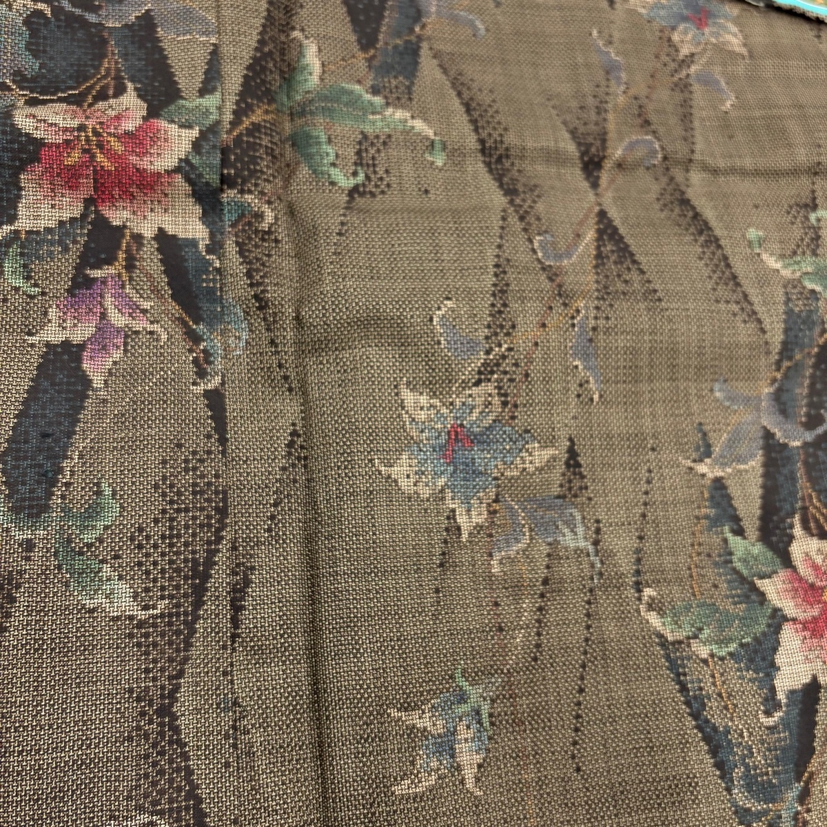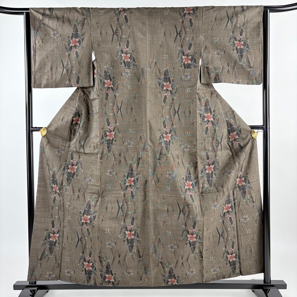 | 大島紬 美品 名品 証紙 純泥染 草花 幾何学模様 茶緑色 袷 身丈160 裄丈62 S 正絹 【中古】 |