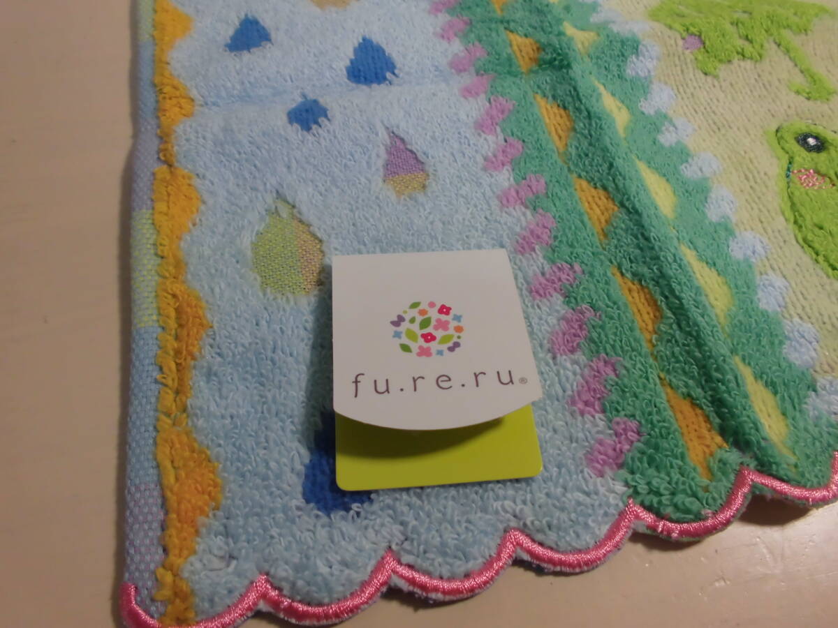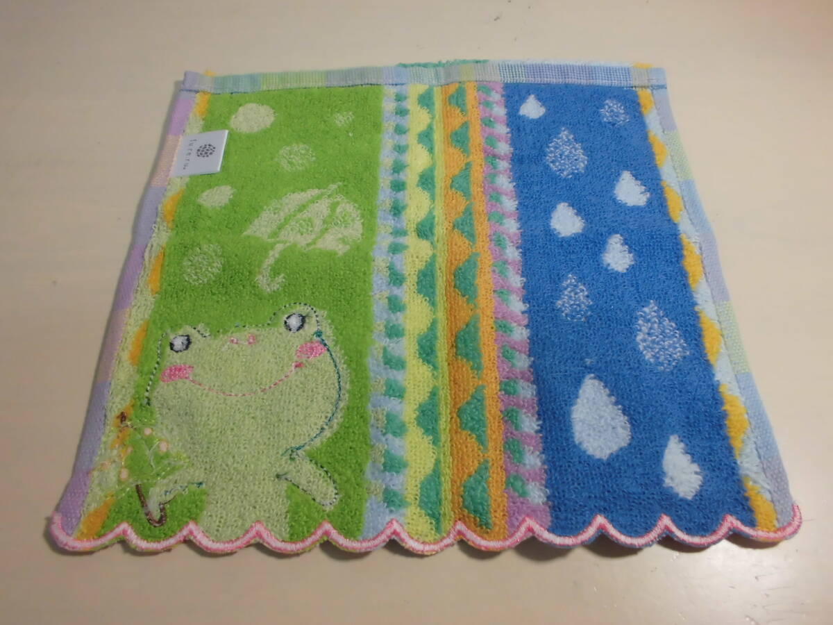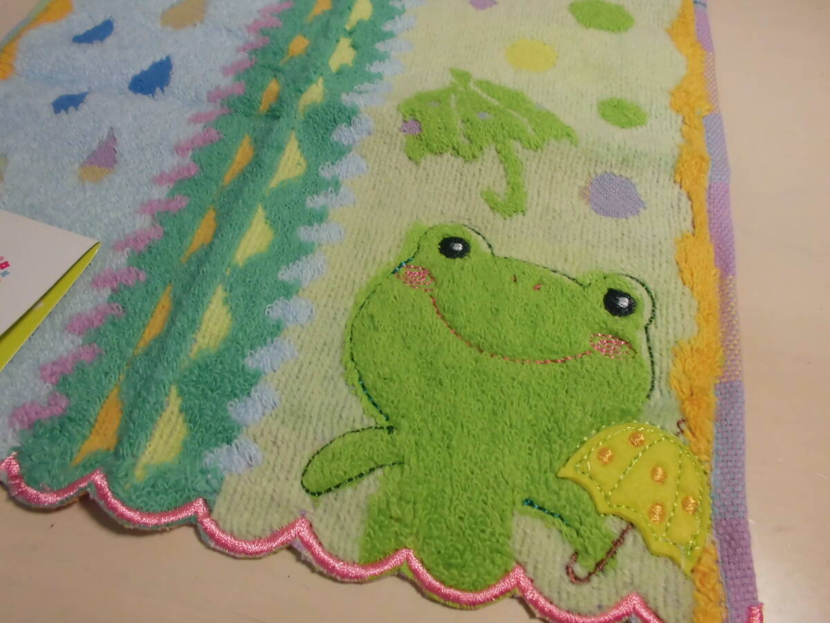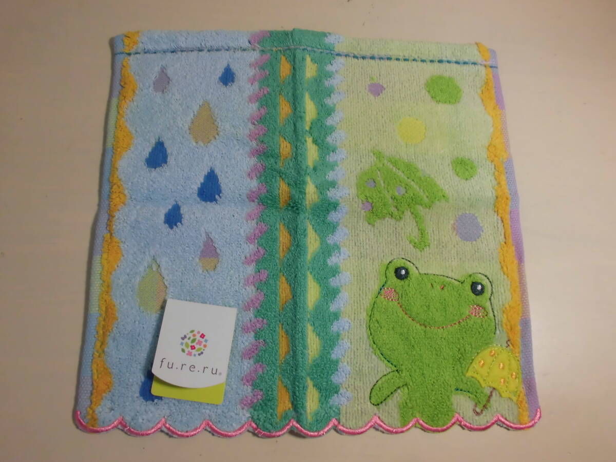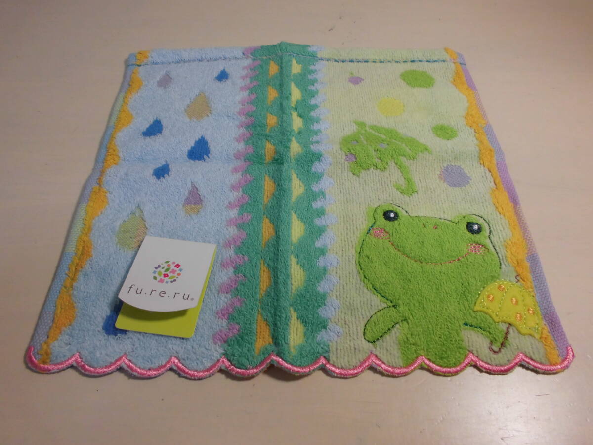 送料140円~  fu.re.ru フレル タオルハンカチ カエル 刺繍 スカラップ の出品になります。