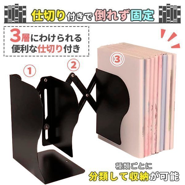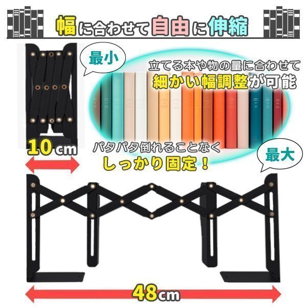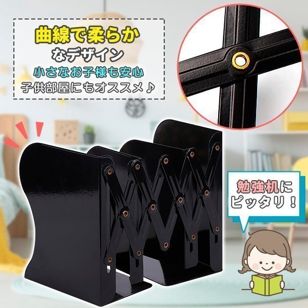 ブックスタンド 本立て 伸縮自在 卓上収納 倒れない ブックエンド デスク整理 本立て ブックスタンド 折り畳み 卓上 伸縮 ブラック 黒
