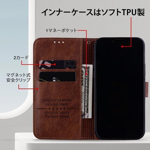 Tdcqssrs AQUOS sense8 ケース 手 人気 内蔵マグネット 全面保護カバー 贈り物 ブラウン 1110