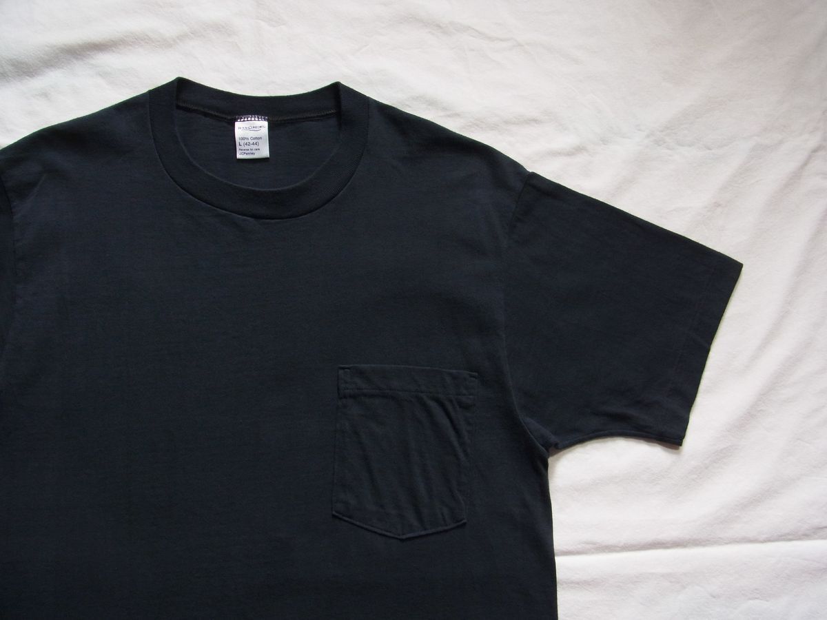 ☆ 90s USA製 ビンテージ JCPenney ROYAL COMFORT 綿100% 無地 ポケット Tシャツ sizeL 黒 ☆古着 80s オールド Hanes FRUIT OF THE LOOM
