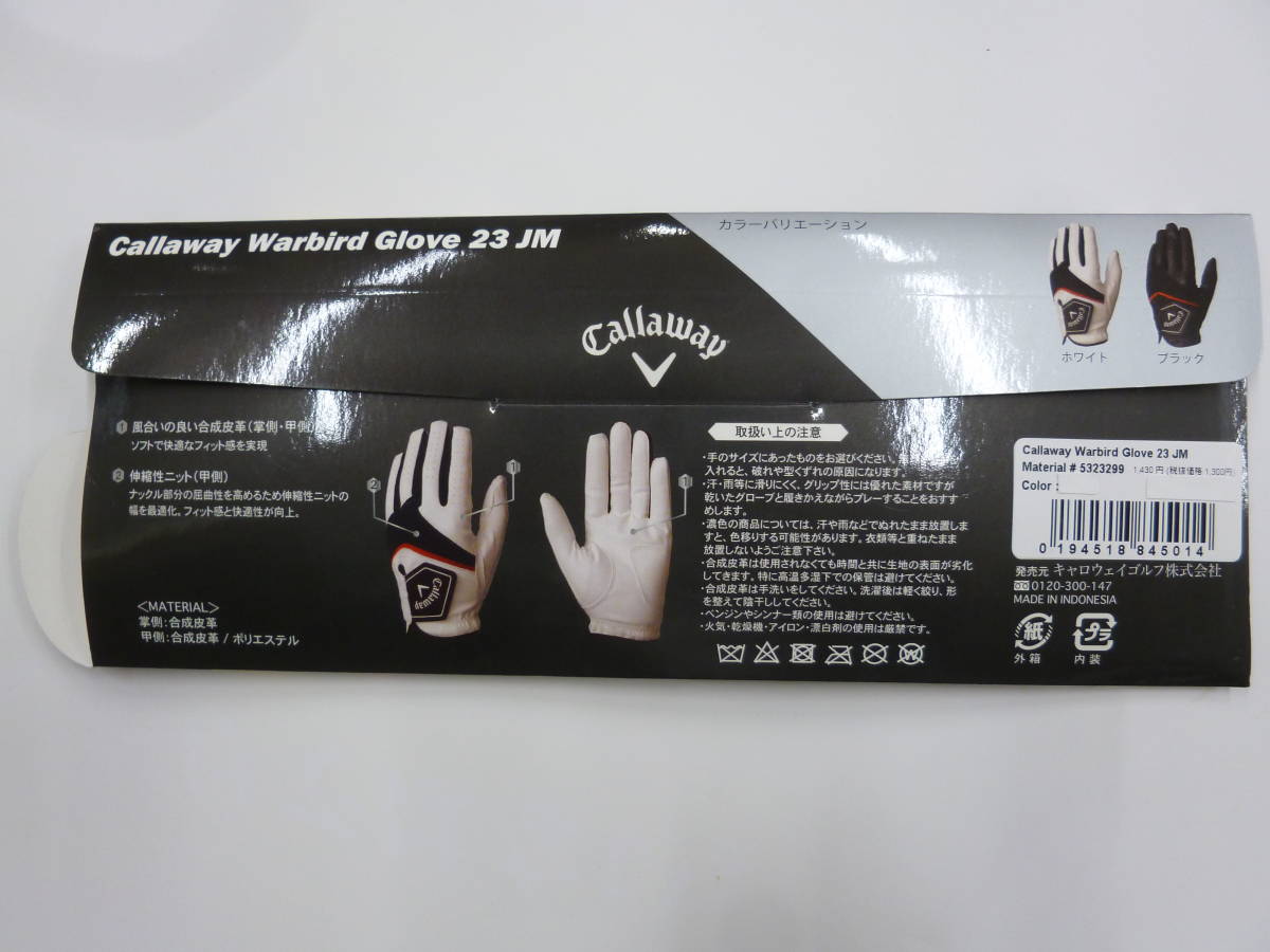 2023 (新品) 22㎝ キャロウェイ★ウォーバードグローブ 23 JM★ メンズ★ アテ付 ★ 白 22㎝