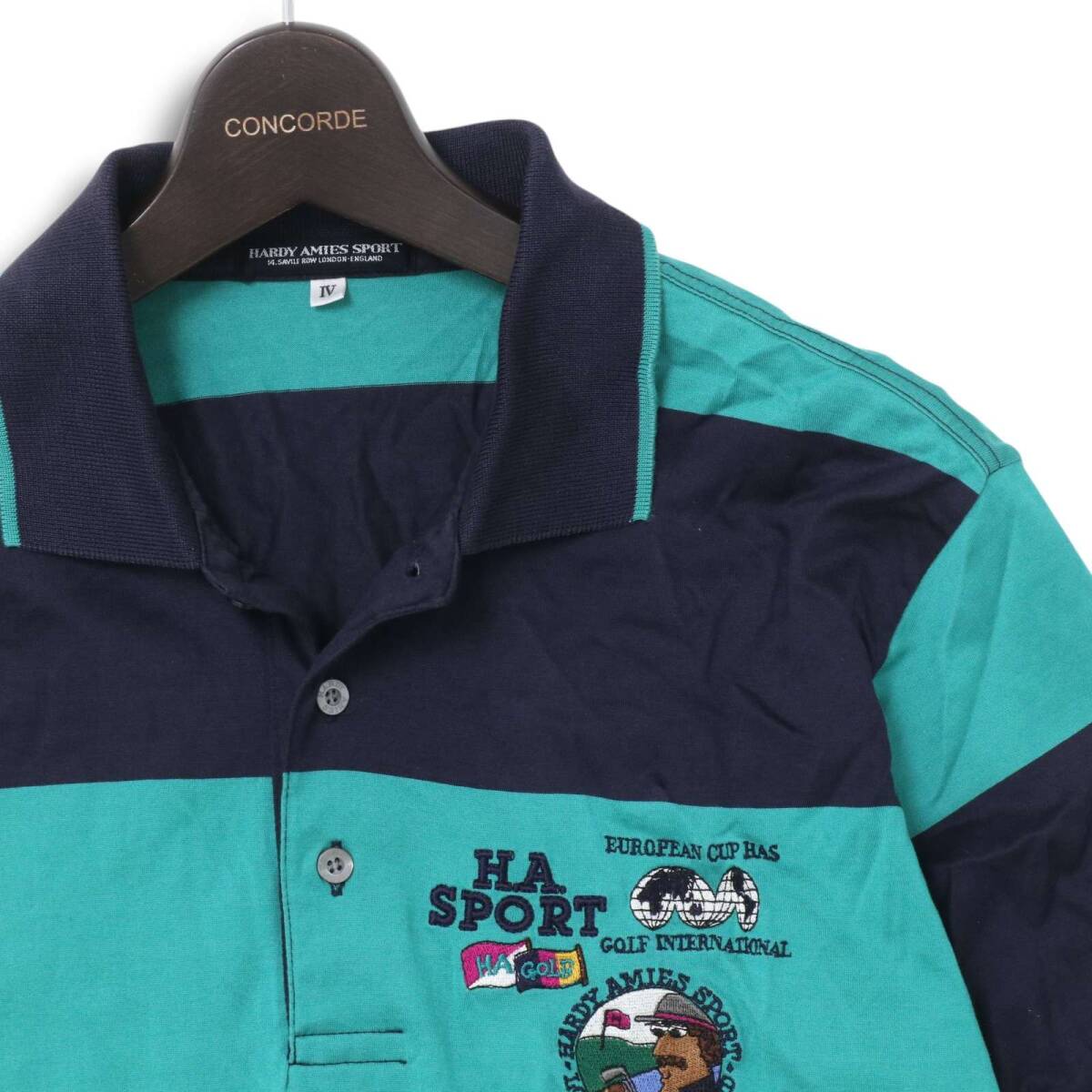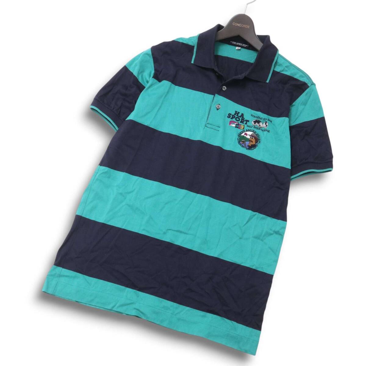 HARDY AMIES SPORT ハーディエイミス 春夏 ロゴ刺繍★ ボーダー 半袖 ポロシャツ Sz.4 メンズ 日本製