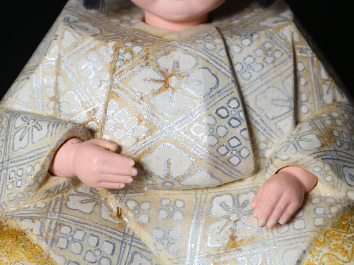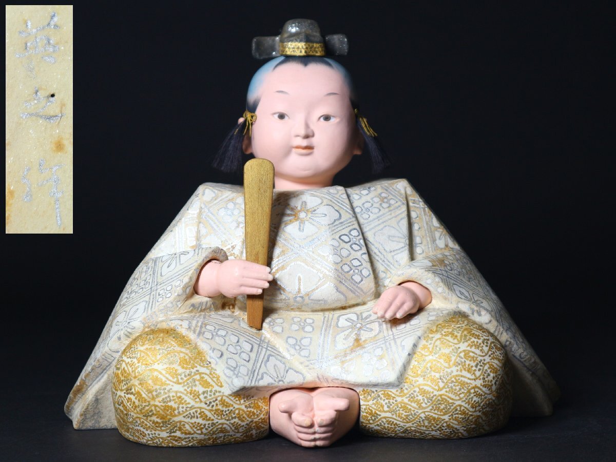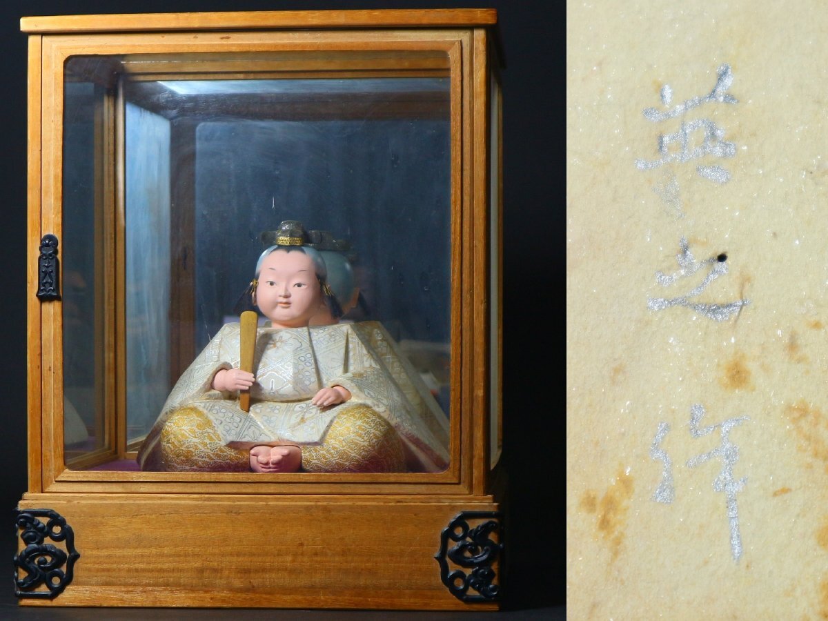 品名】 時代木目込人形 子供天神 在銘 英之 ガラスケース付 日本人形 郷土玩具 民芸 伝統工芸 風俗人形 置物 【状態】 経年によるキズやヨゴレ、イタミ、シミ、虫食いがございます。 手や卯での表面に剥がれがございます。 尺の根元が抜けて外れます。 ガラスケースにヨゴレ、シミ、イタミがございます。 時代や産地、作者の記載がある商品に関しては当店での判断によるものですので、保証はいたしかねます。あくまで参考程度とお考えいた だき、画像による判断をお願い致します。 上記を含む商品の状態や詳細(材質等)を写真にてご確認いただき、納得された上での入札をお待ちしております。 【大きさ】 人形 幅:約27.5cm 奥行:約22cm 高さ:約22.5cm ガラスケース 幅:約39cm 奥行:約39cm 高さ:約48cm (採寸につきましては多少の誤差があるかと思いますので、予めご了承ください。) |