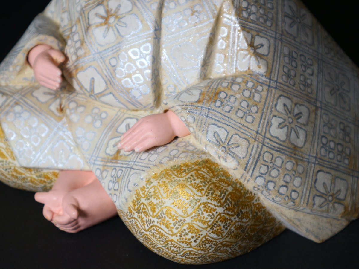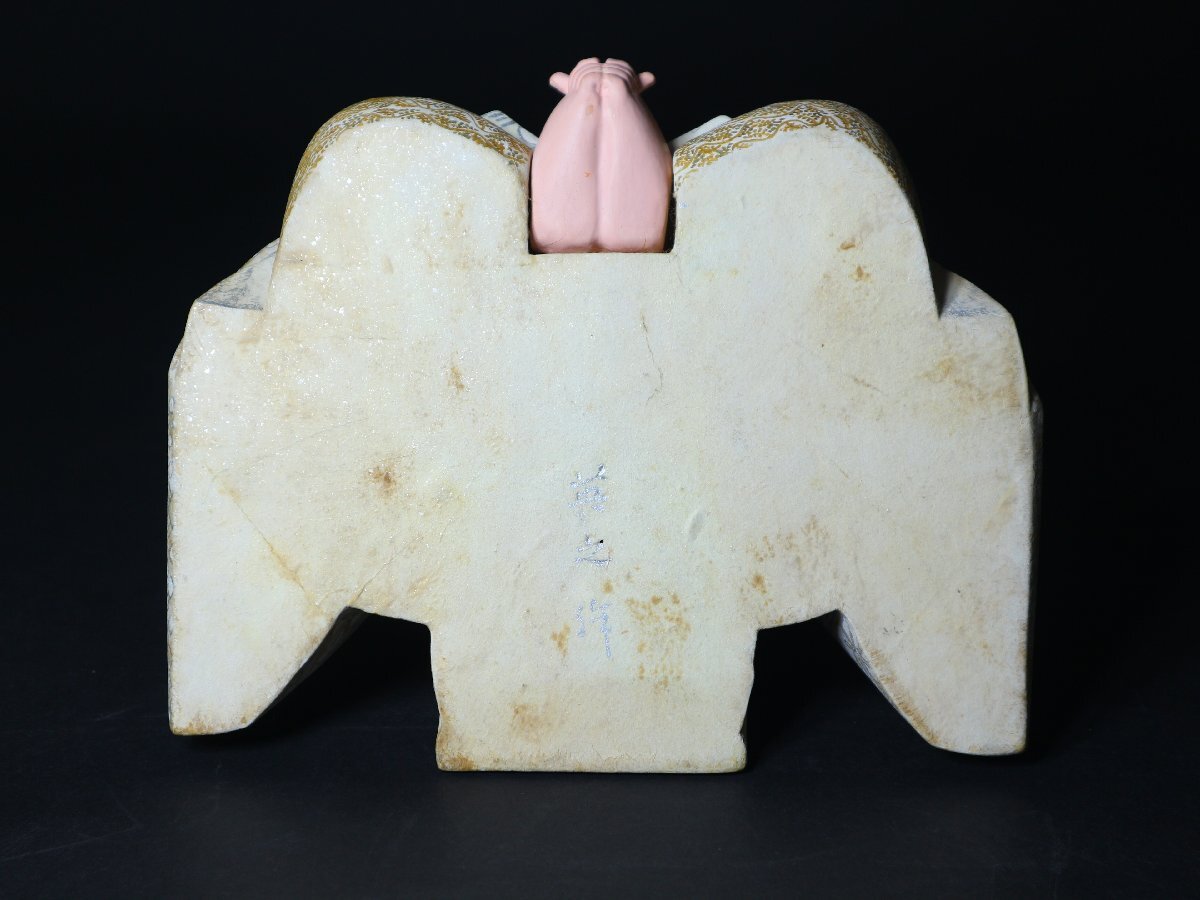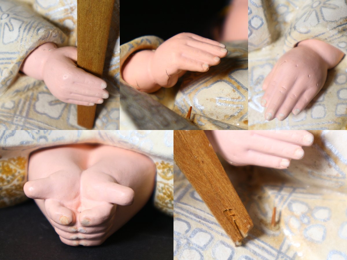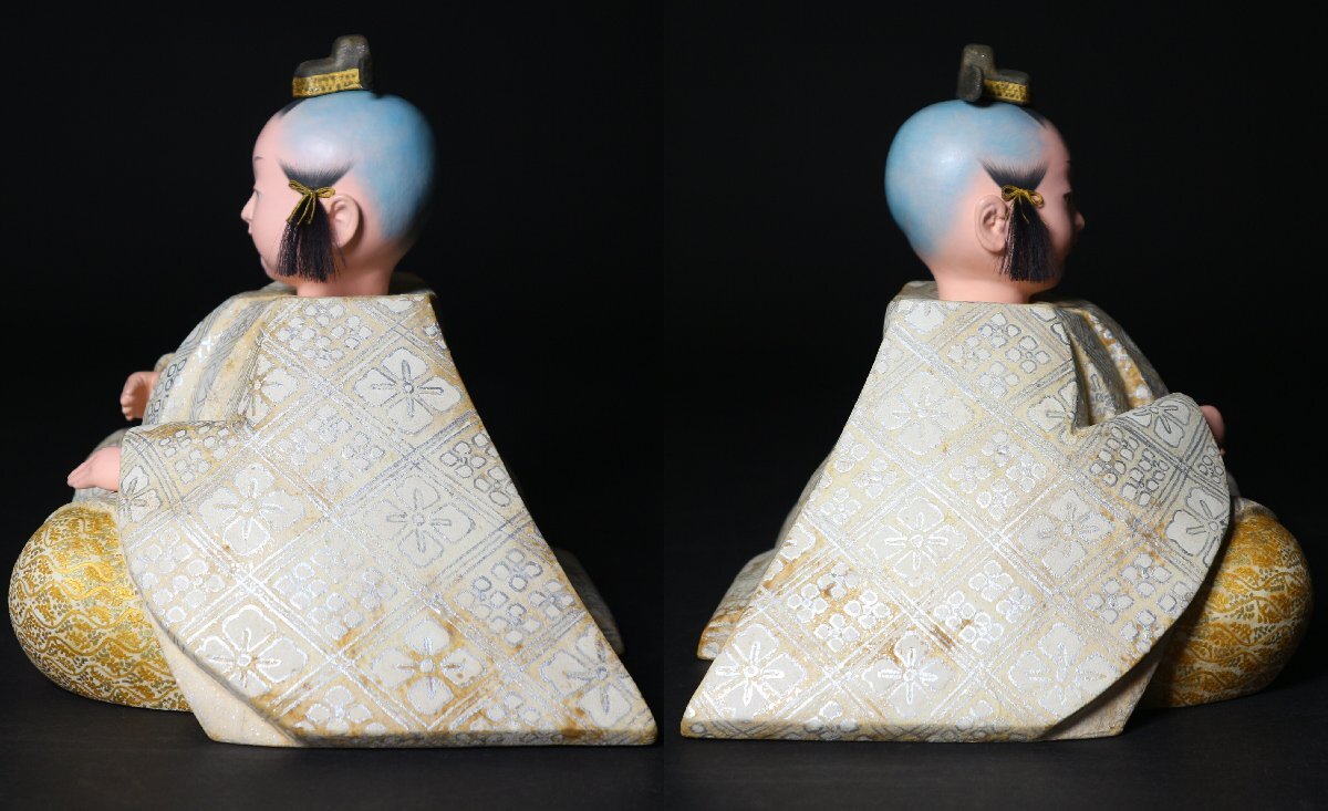 品名】 時代木目込人形 子供天神 在銘 英之 ガラスケース付 日本人形 郷土玩具 民芸 伝統工芸 風俗人形 置物 【状態】 経年によるキズやヨゴレ、イタミ、シミ、虫食いがございます。 手や卯での表面に剥がれがございます。 尺の根元が抜けて外れます。 ガラスケースにヨゴレ、シミ、イタミがございます。 時代や産地、作者の記載がある商品に関しては当店での判断によるものですので、保証はいたしかねます。あくまで参考程度とお考えいた だき、画像による判断をお願い致します。 上記を含む商品の状態や詳細(材質等)を写真にてご確認いただき、納得された上での入札をお待ちしております。 【大きさ】 人形 幅:約27.5cm 奥行:約22cm 高さ:約22.5cm ガラスケース 幅:約39cm 奥行:約39cm 高さ:約48cm (採寸につきましては多少の誤差があるかと思いますので、予めご了承ください。) |