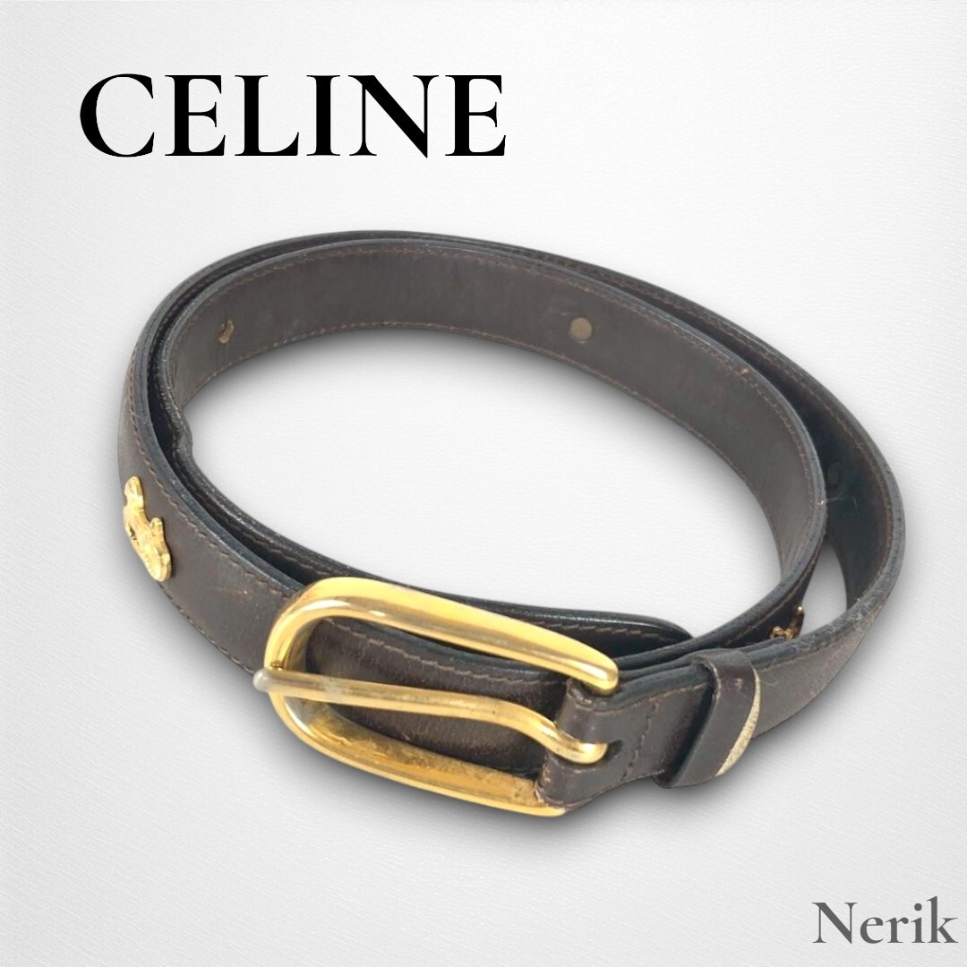 【華麗】CELINE セリーヌ レザーベルト 馬車金具 ゴールドバックル ヴィンテージ ブランド 送料無料!