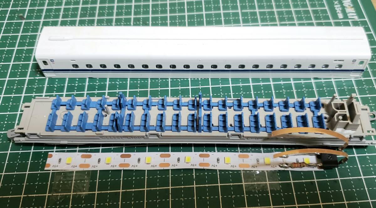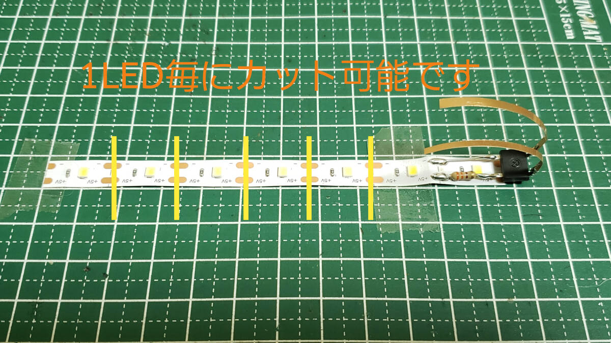 1両で7発のLEDで、1LED毎にカットが出来ますので、先頭車や車両長の短い車両への取り付けや、様々な車両へ対応可能です。