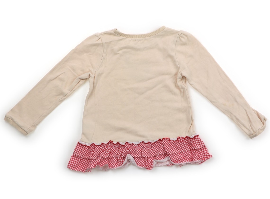 色褪せや毛羽立ちがあり、前身頃の所々に茶色いシミがあります。フリル裾の反り返りがあります。外遊び用としていかがでしょうか?