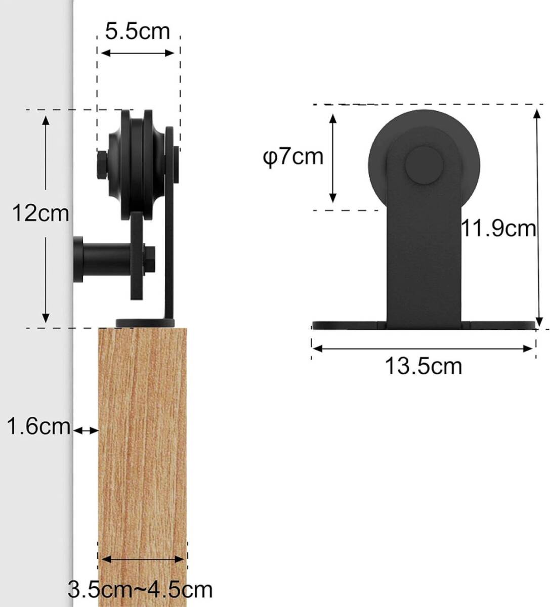 • 【ご使用注意】 取り付ける壁は、丈夫なコンクリート壁やれんが積壁、頑丈な木壁等強度のある壁であることを確認してください。レールの推賞寸法:取付間口より少し長くて、ドアの幅の2倍ぐらいをおすすめします。 対応可能なドアの厚さ:35mm-45mm。例えば、ドアの厚さ40mmの場合、ドアと壁の隙間は約16mmです。 ドアの上端から天井まで150mm以上の空間が必要です