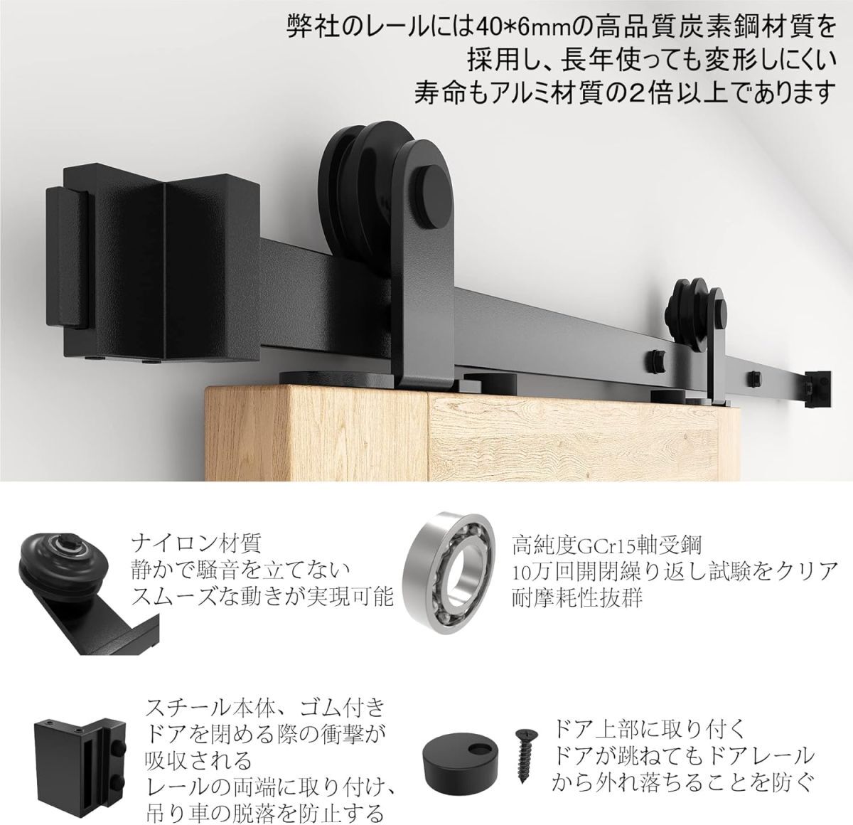 •    【高品質炭素鋼素材採用】:普通のアルミ材引き戸レールより強度、耐摩耗性、靭性などの重要な属性が全面的オーバーします、長年使っても変形しにくいし、寿命もアルミ材質の2倍以上であります。【荷重】:100KGまで。ご注意ください、レール金具セットのみ販売しております。ドアを含みません