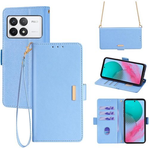Xiaomi POCO F6 Pro ケース 手帳型 ショルダー シャオミ POCO F6 プロ 財布型 カバー ストラップ長+短2本付き 肩掛け 斜めがけ 女性 おしゃれ ロングストラップ カード収納 横置き 上質な手触り 耐汚れ気質 肌感レザー 防指紋 耐久性 贈り物 COCOCLOUD ブルー 1328