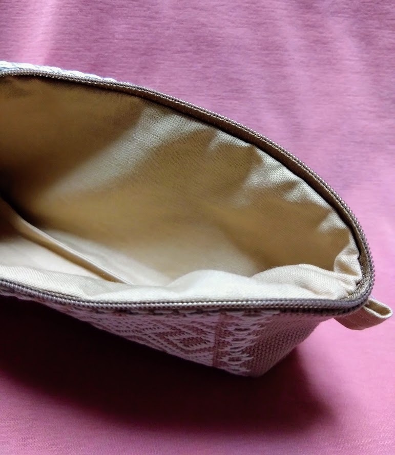 津軽こぎん刺しでマチ付きのポーチを仕立ててみました。