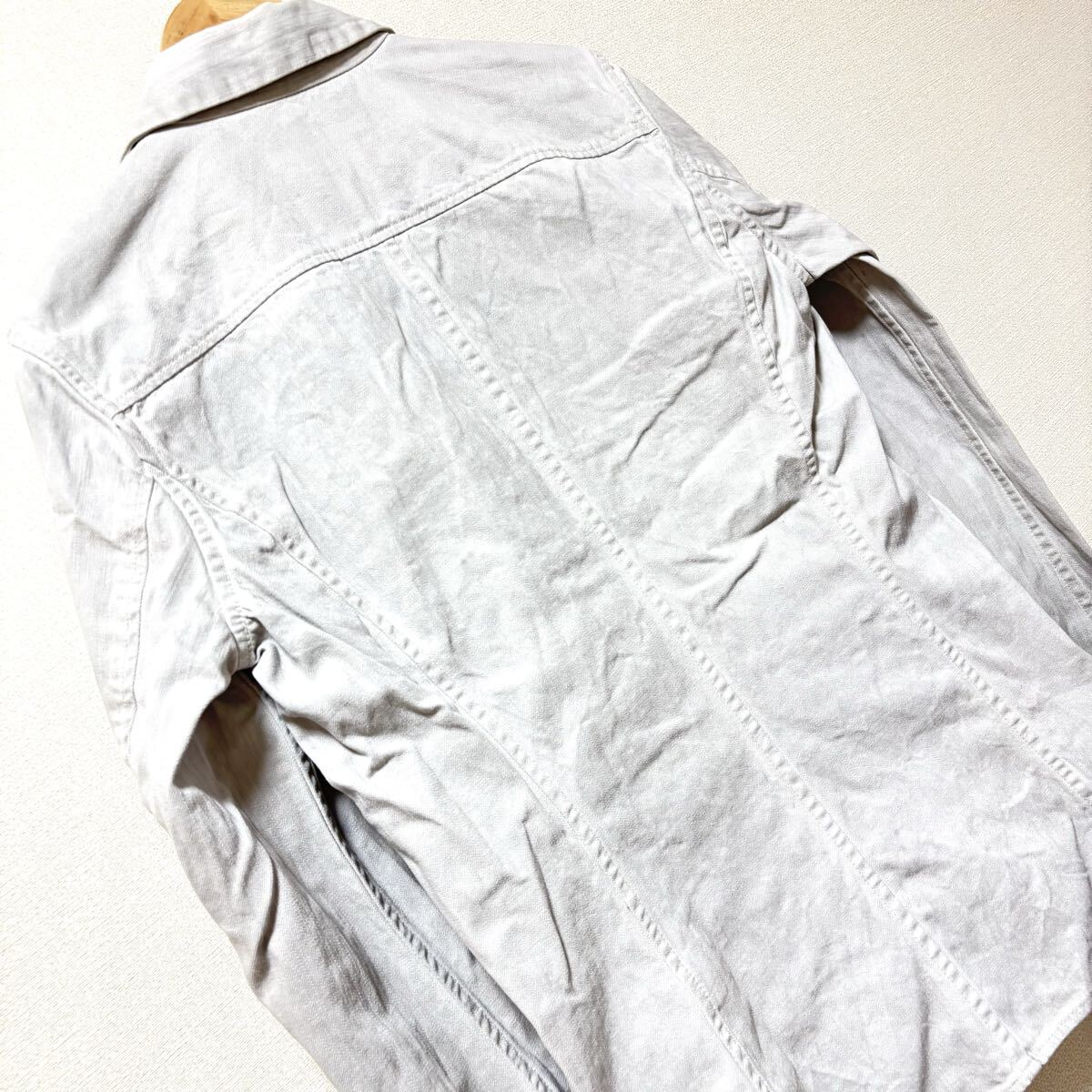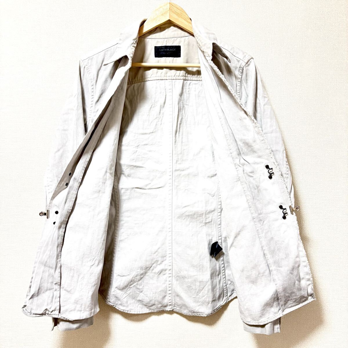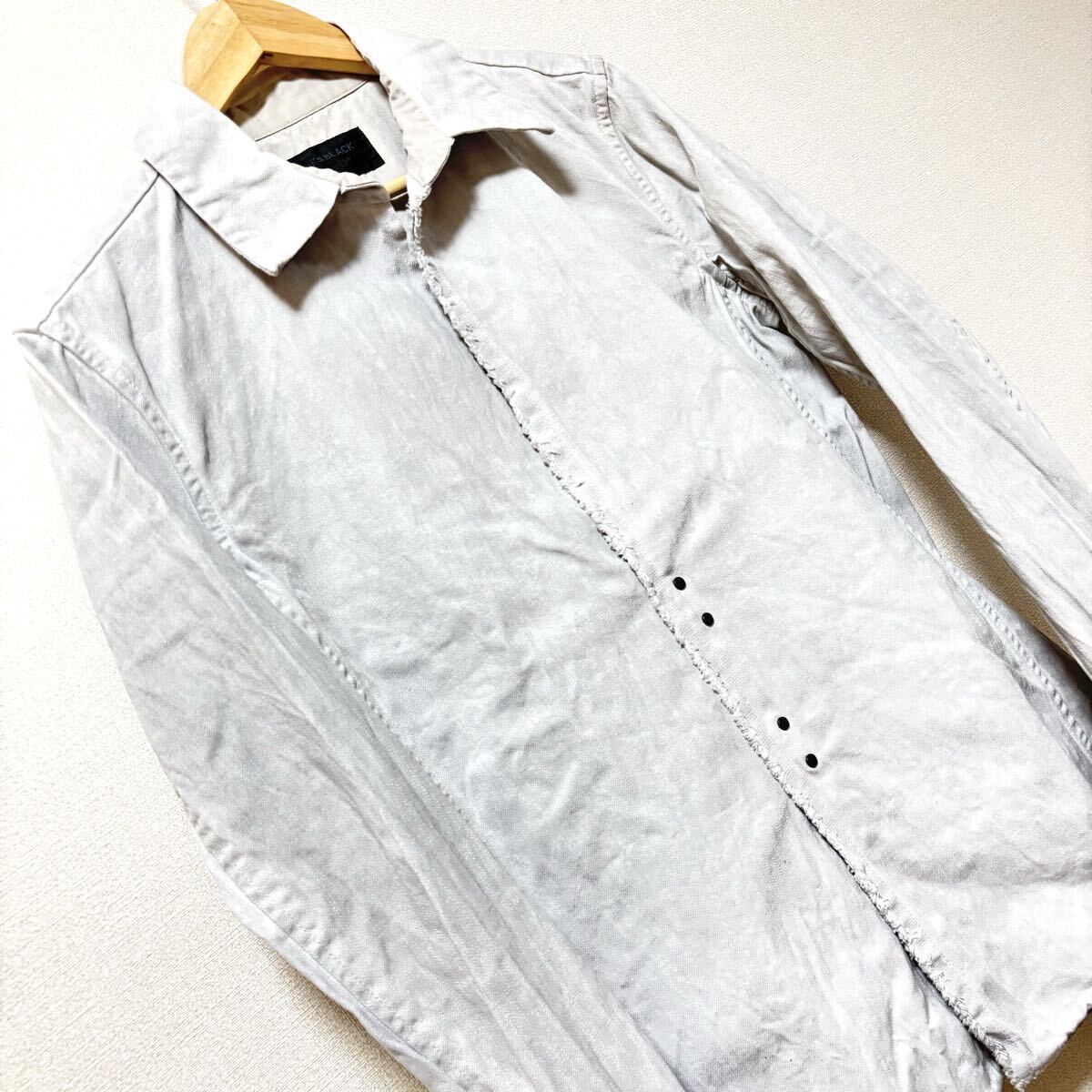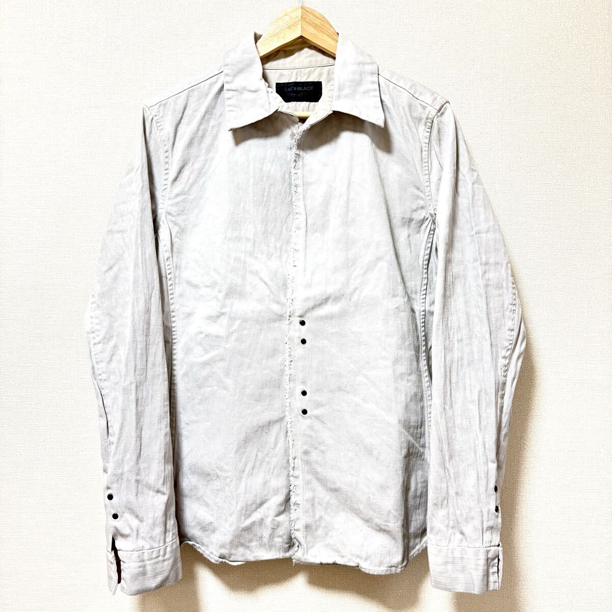 Lui's BLACK by wjkのシャツジャケットです。デニムのようなタフで厚手のコットン素材で仕立てられたジャケットになります。都会的でスタイリッシュなデザインが魅力の一着です◎目立つキズや汚れなどもないのでまだまだお使いいただけると思います^ ^