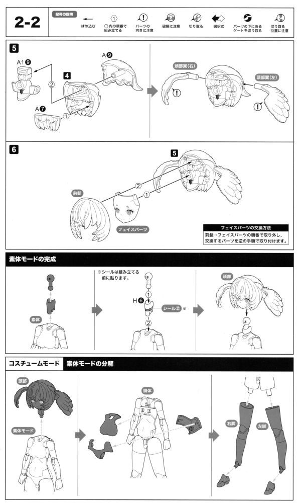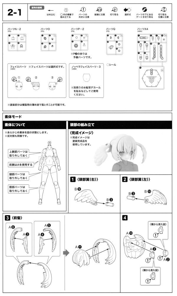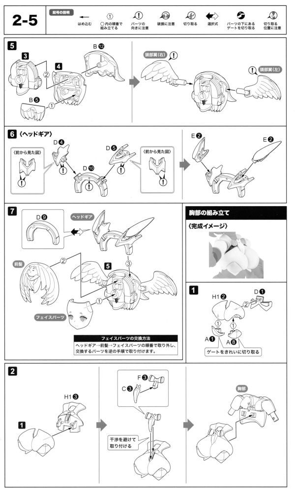 ・説明書の2-1ページ『頭部の組み立て』、2-5ページ『頭部の組み立て』が組み立てることができるパーツのセットになります。