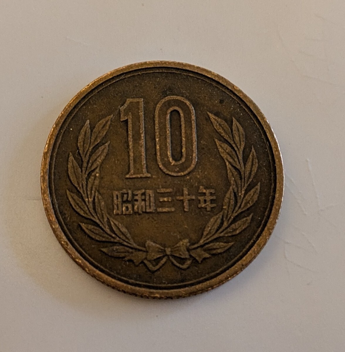 昭和30年 10円硬貨 ギザ10です。流通品ですので、その点ご理解願います。
