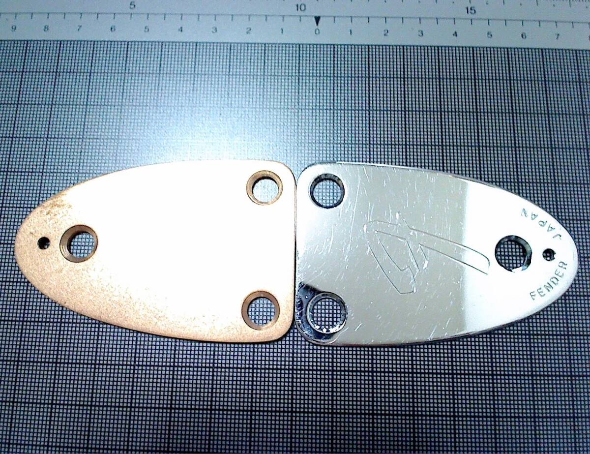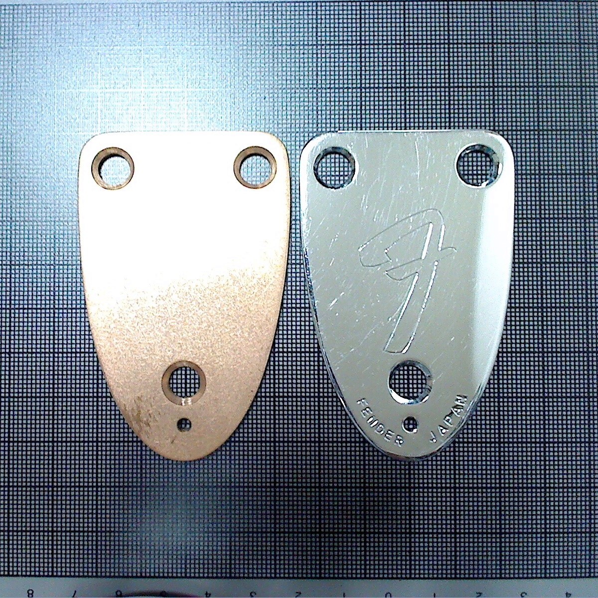 ブラス製【厚型】●3点止めネックジョイントプレート Fender Japanシェイプ●Brass 3-Bolt Neck Plateストラト テレキャスター等