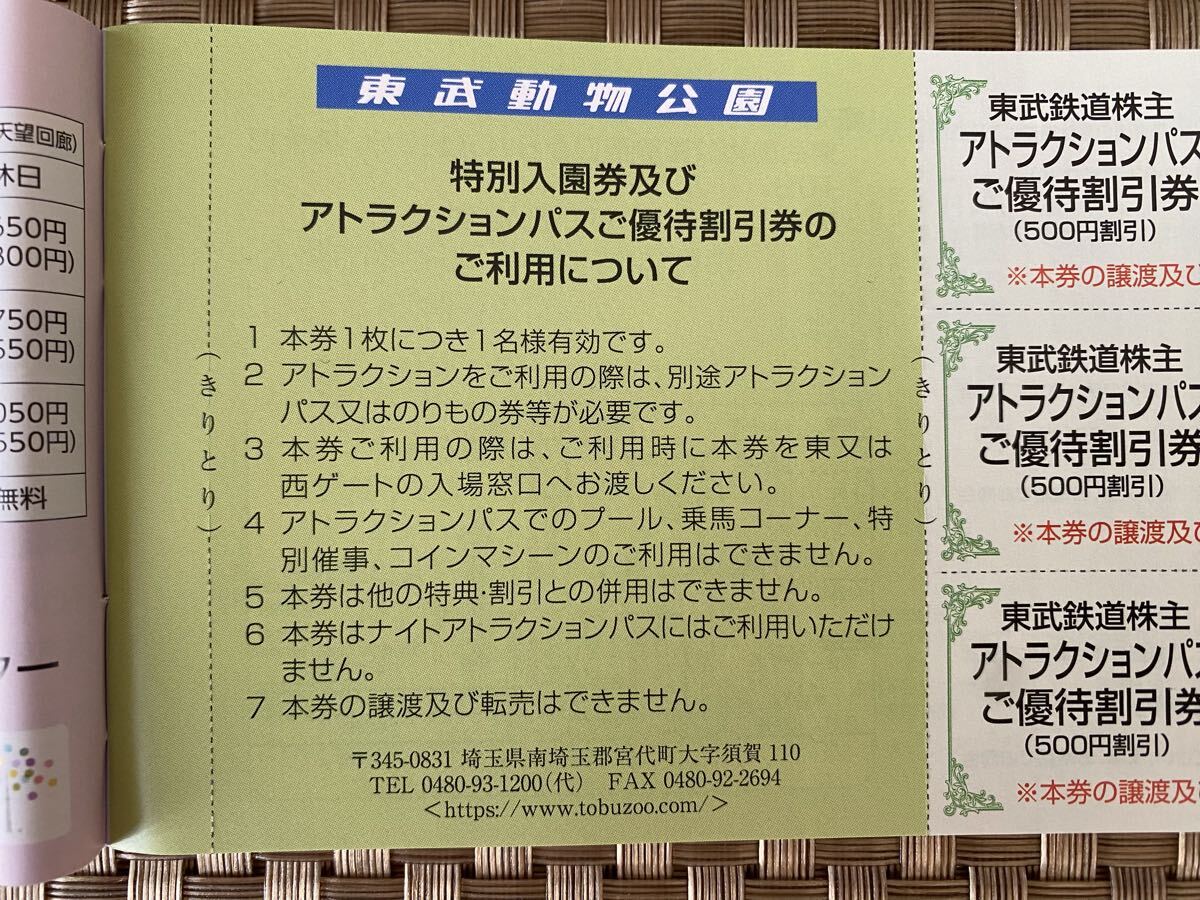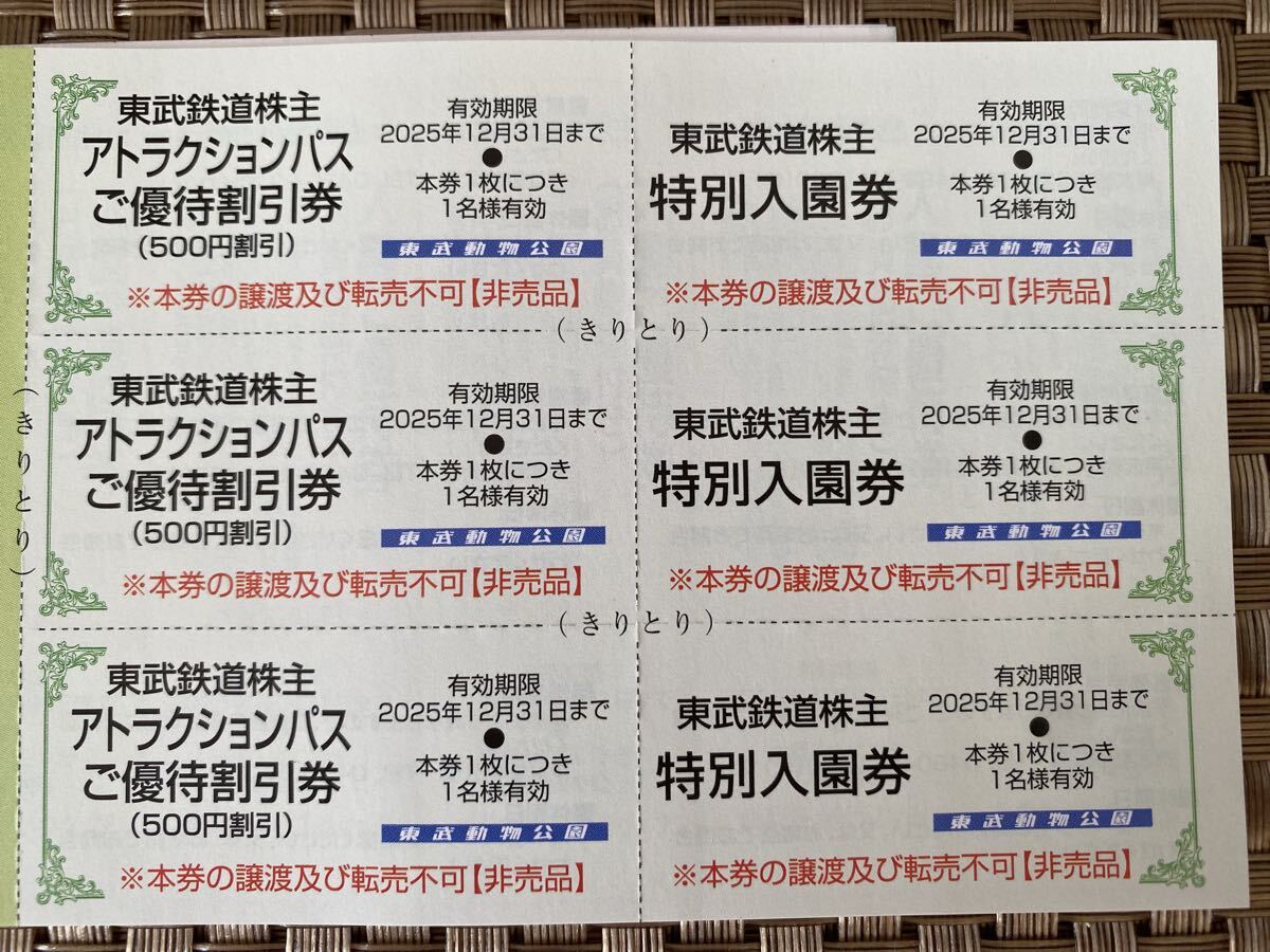 ◆東武動物公園で使用できる入園券とアトラクションパスの割引券を各3名分