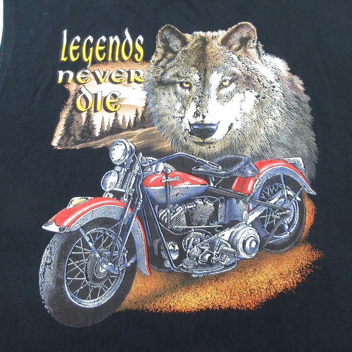 【商品名】 L★古着 ノースリーブ ビンテージ Tシャツ メンズ 00年代 00s オオカミ バイク コットン クルーネック 黒