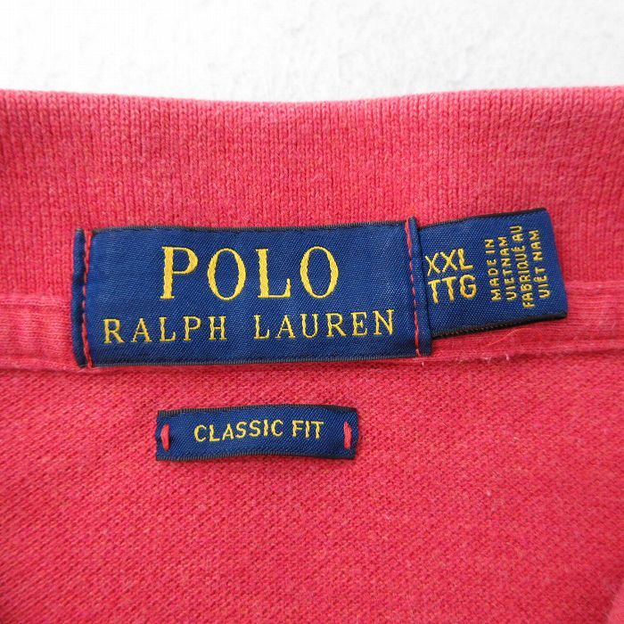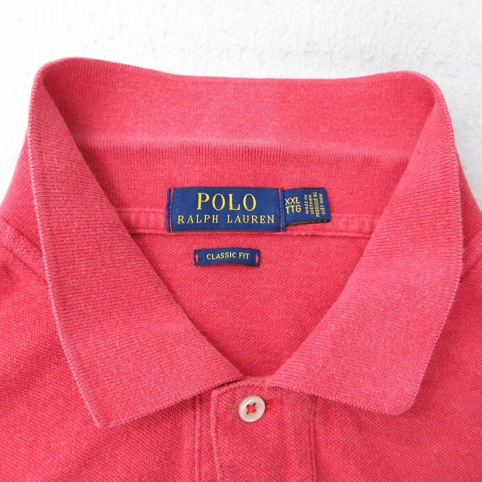 【商品名】 XL★古着 ラルフローレン 半袖 ブランド ポロ シャツ メンズ ワンポイントロゴ 鹿の子 大きいサイズ ロング丈 コットン 赤
