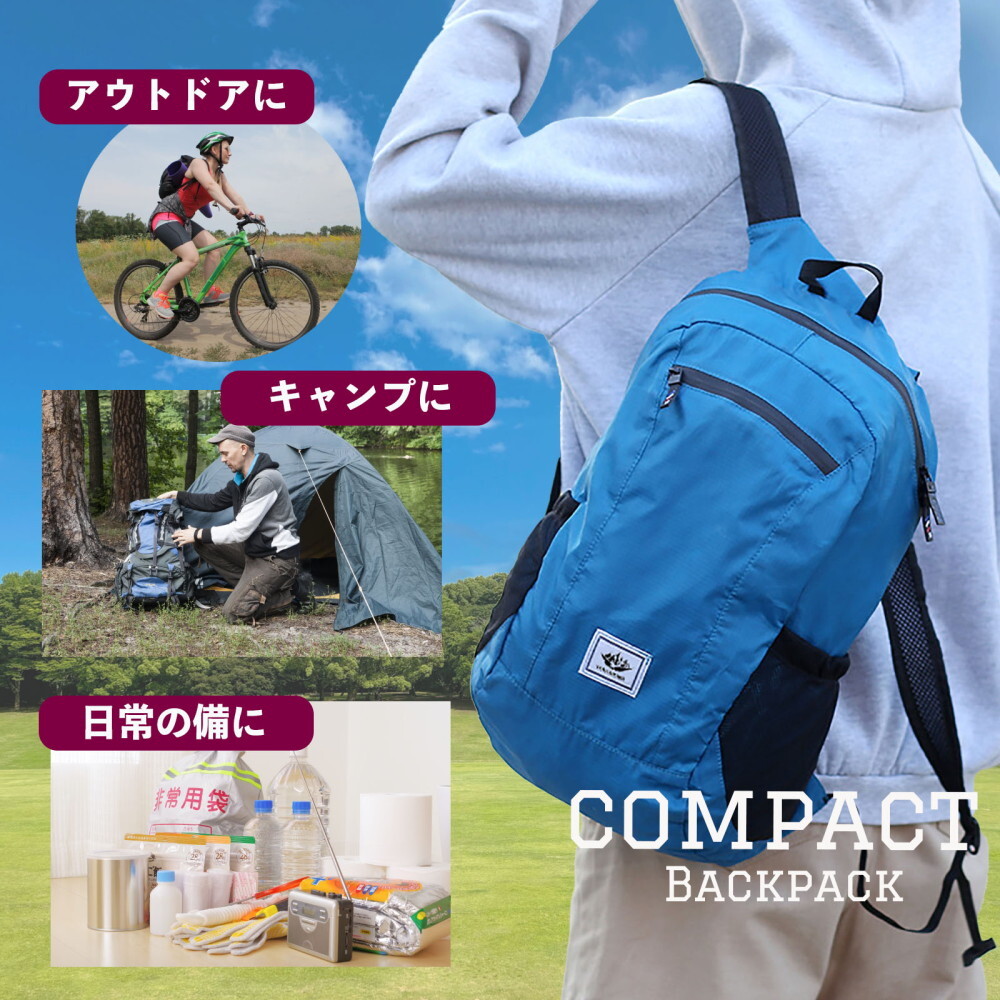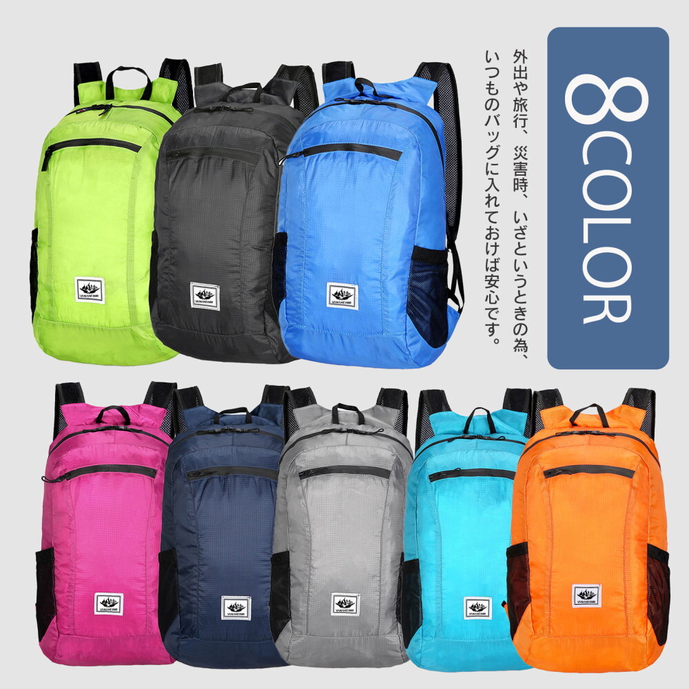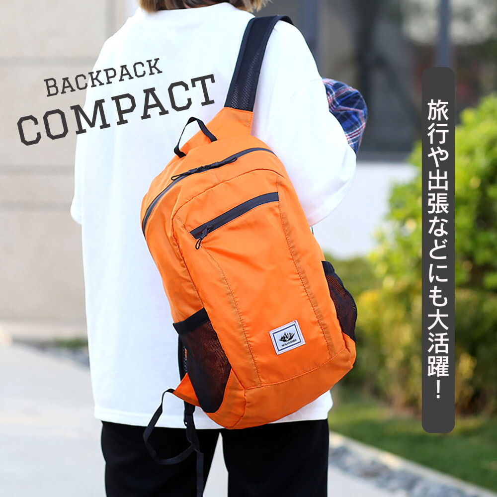 機能性抜群の携帯リュックが新登場!コンパクトになる折りたたみデザインで、旅行やアウトドアにぴったりの軽量バックパックです。外出時に必須のアイテムを収納できるため、便利さと使いやすさが魅力。また、ポータブルなので、収納時にはかさばらず場所を取りません。容量は約20Lでフロントポケット1個、500mlペットボルトも入って使いやすいサイドポケット2個で付属の収納袋1個付きます。