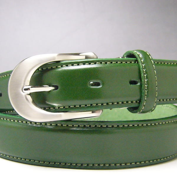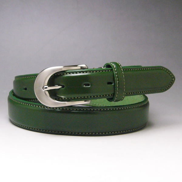 バックルは、柔らかなな印象の丸味を帯びたシルバーバックルを合わせ、大人カッコよいレザーベルトに仕上げました。