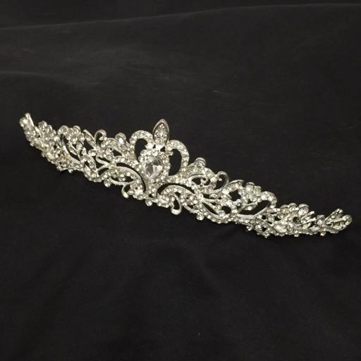 ブランド不明 ラインストーン ティアラ 全長約26.5㎝ シルバーカラー ヘアジュエリー ヘアアクセサリー 現状品 |
