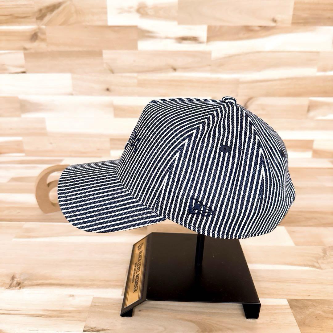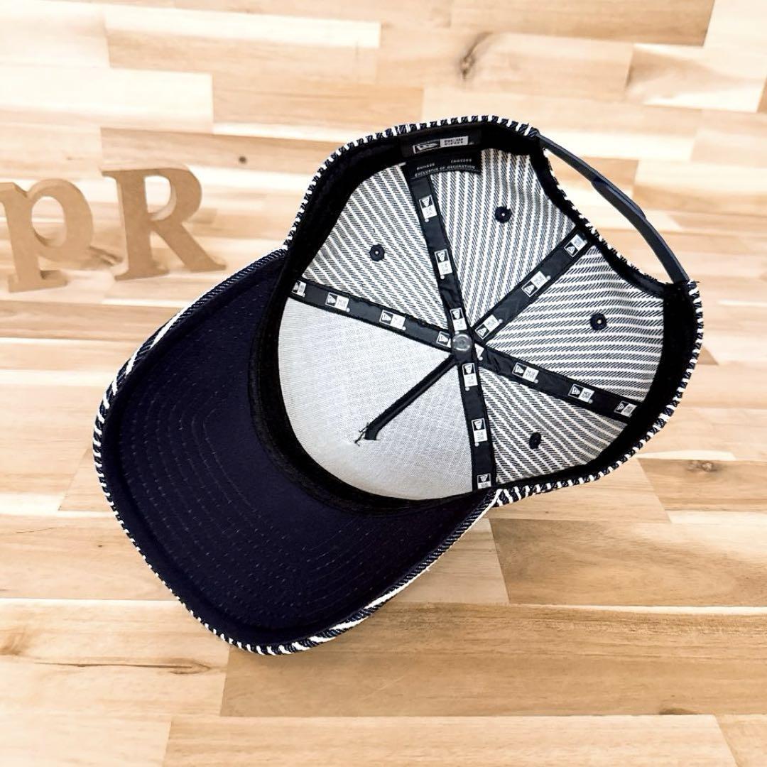 深みのあるネイビーとホワイトのピンストライプが爽快感を与え、光の角度で立体感が際立つカラーリングが魅力の逸品。フロントの刺繍ロゴに加え、サイドにはクロスしたゴルフクラブモチーフ刺繍があしらわれ、程よく個性を添えるディテールが全体を引き締め、洗練された存在感を放つ、とってもオシャレなNEW ERAのキャップです。
