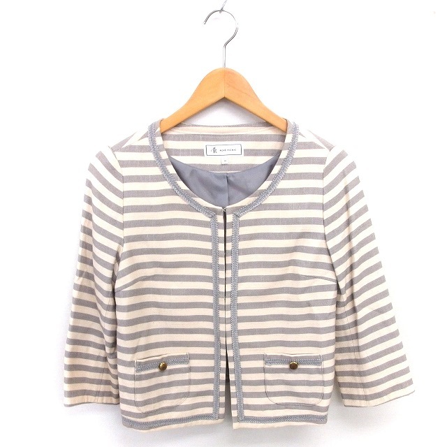 ロペピクニック ROPE Picnic ノーカラー ジャケット アウター ボーダー 総裏地 七分袖 38 ベージュ グレー 薄茶 /TT15 レディース