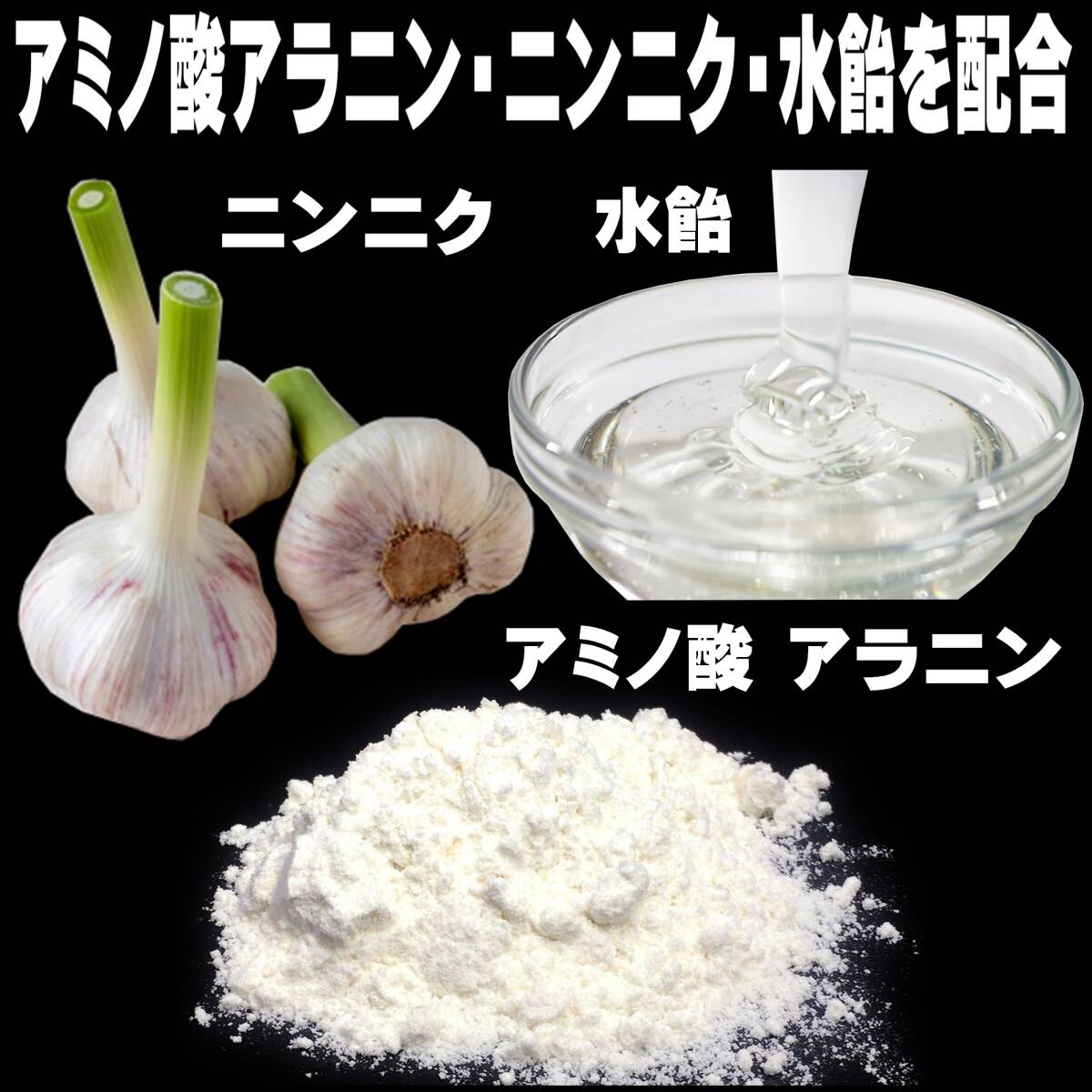 ケイムラホワイト&レッドイカタンにはアミノ酸 旨味・甘味成分アラニンと激臭ニンニク、水飴を配合。