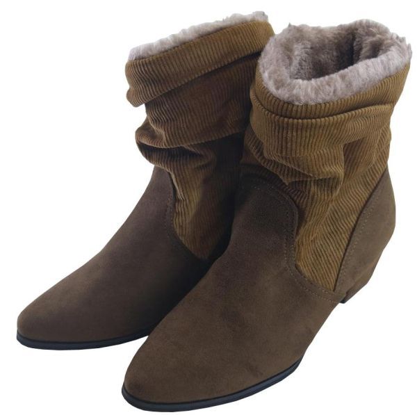 コーデュロイコンビブーツ 裏起毛 クッションソール取り外し可 おしゃれ 暖かい ショートブーツ
