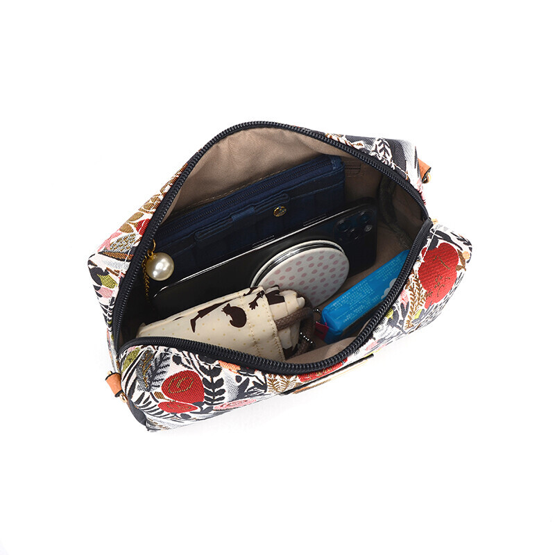 色鮮やかな花柄2WAYポーチ&ショルダーバッグは、おしゃれで実用的なアイテム。ちょっとしたお出掛けで使っても便利。全面が刺繍風な生地で花とリ―フ柄、ゴールドの金具、カラーファスナー使用でこだわりの作り。デイリーユースはもちろん、旅行やショッピングなどの外出先でも大活躍してくれます。コンパクトながらもしっかりとした収納力を持ち、メイクアップアイテムや必需品をすっきりと持ち運べます。おしゃれさと使い勝手を追求する方にぴったりの一品。
