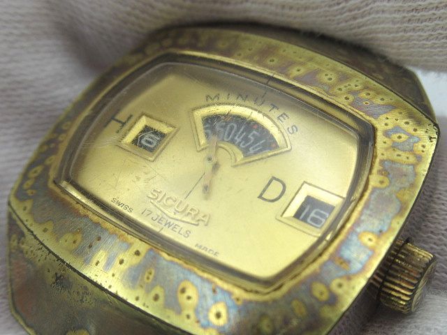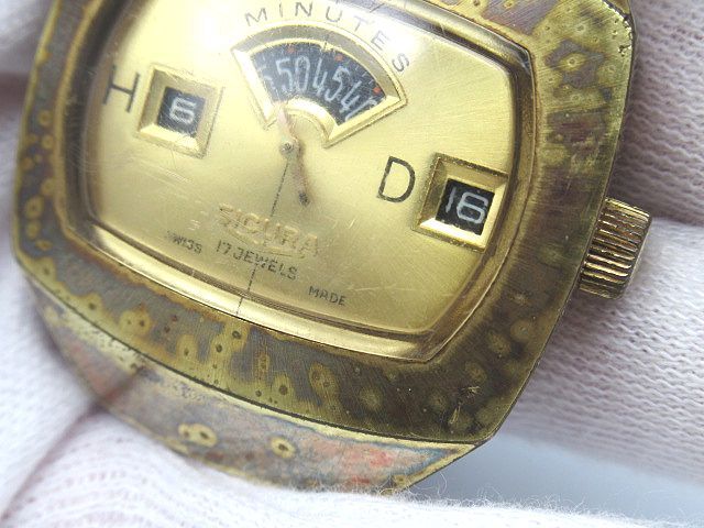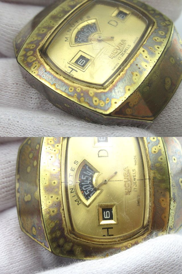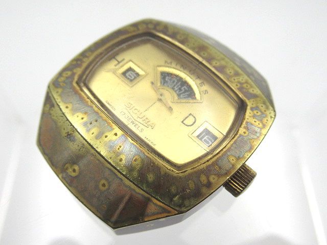 | ◇SICURA◇シクラ◇ MINUTES DATA 17石 手巻き デイト リューズ破損 ジャンク フェイスのみ メンズ 腕時計 スクエア文字盤 管理番号:35064/H5 *付属品* 無し ※画像に無いものはお付けしません。 *サイズ(約)* ・ケース 縦 4.3cm×横 3.5cm(リューズ含まず) ・文字盤 縦 2cm×横 2.8cm ・ラグ幅 1.8cm ※素人採寸の為、誤差有。 【状態】 店舗買取品/保管品/中古になります。 リューズが抜ける為、巻上げが出来ません。 その為、リューズ破損・ジャンク品として出品しております。 現状渡しとなりますので、落札者様負担での メンテナンス・修理が可能な方のみご入札をお願い致します。 傷・擦れ・汚れ・変色・劣化・風防全面的に傷・ くすみ・その他ダメージがあります。 詳しい状態は写真でご確認下さい。 ※商品の状態の説明はあくまで出品者の主観に基づいた説明です。 ※店舗保管品です。 ※新品の様な完璧な状態では御座いません。 ※ご理解頂ける方のご入札をお願い致します。 ご入札前に必ず全文をお読みになり、 お客様が十分にご納得された上でのご入札、 ノークレーム・ノーリターンでお願い致します。 入札の取消は行っておりませんのでご注意下さい。 (ご入札された時点で同意頂いたものとします) ※画像のものがすべてになります。 ※店舗保管品の為、多少のスレキズ等ある場合が御座います。 ※専門知識が無いため質問にお答えできない場合が御座います。 ※素人検品・撮影の為写真に写り切らない汚れ・キズがある場合が御座います。 ※新品の様な100%完璧な状態では御座いません。 ※念入りに検品しておりますが見落としがある場合が御座います。 ※神経質な方、完璧をお求めの方は入札をお控え下さい。 ※御理解頂ける方のご入札をお願い致します。 ※当店はまとめてお取引には対応致しません。 全て単品でのお取引となります。 ※同梱は行っておりません。 ※商品管理上、取り置きは致しませんのでご了承下さい。 | |||