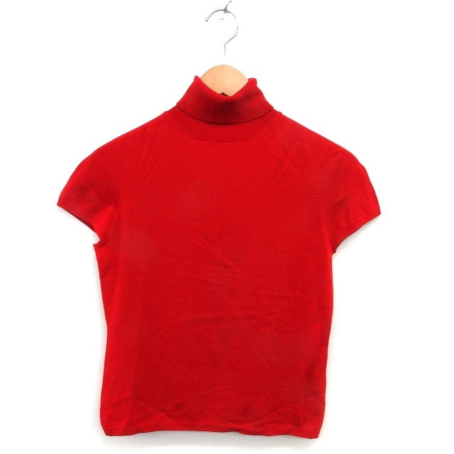 レキップヨシエイナバ L'EQUIPE YOSHIE INABA タートルネック ニット セーター リブ ウール ハイゲージ 半袖 M 赤 レッド /NT33 レディース