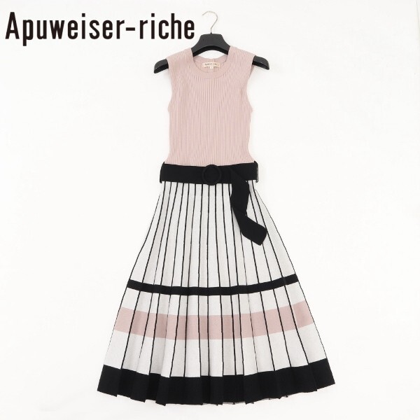 【KA1】◆Apuweiser-riche アプワイザー リッシェ 配色 プリーツ ニット ノースリーブ ワンピース 2 | |